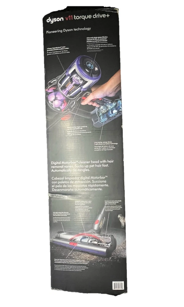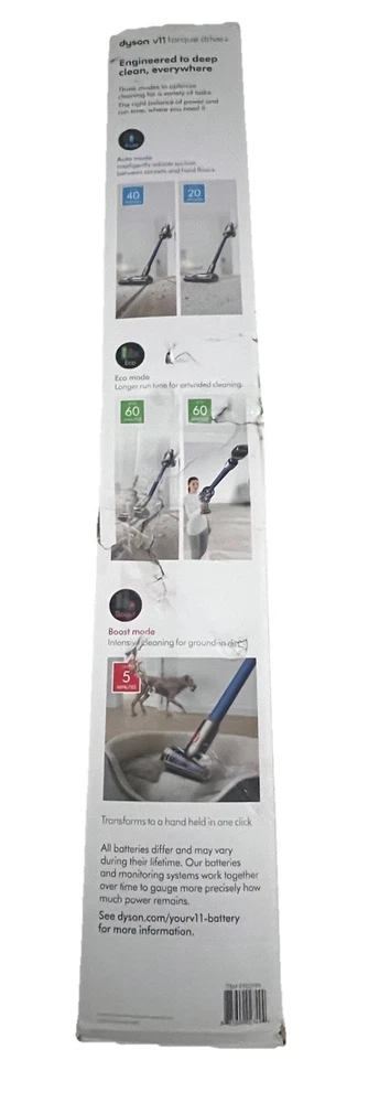 The Dyson V11 Torque Drive+ SV28 Blue Cordless Stick Vacuum Cleaner is a high-powered and versatile cleaning solution for any home. With a runtime of up to 60 minutes and a charge time of just 4.5 hours, this bagless vacuum offers convenient and efficient cleaning. The whole-machine filtration system captures allergens, while features like pet hair removal, carpet cleaning, and edge cleaning make it easy to tackle all types of messes. The compact design, ergonomic handle, and portable nature of the vacuum make it ideal for quick clean-ups and reaching tight spaces. Additionally, the included accessories like the crevice tool and charger enhance the overall cleaning experience.