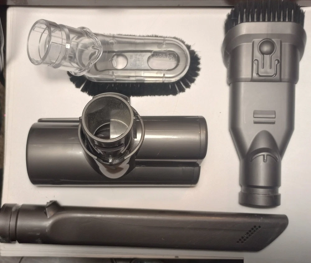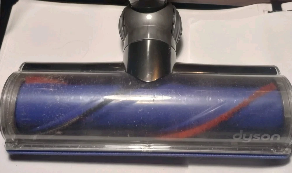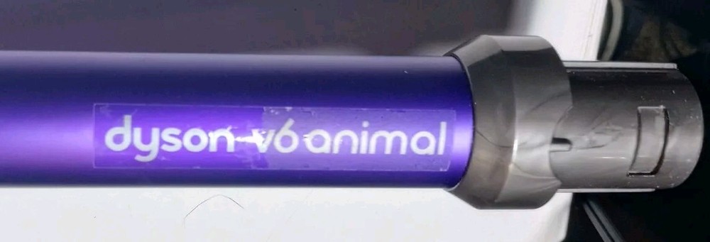 This Dyson V6 Animal cordless vacuum cleaner comes with a charger and wall mount. It features a stick design in a purple color, and includes a filter, nozzle, floor brush, and charger. The vacuum is bagless and operated by battery. It is suitable for cleaning various surfaces and is a good addition to any home. Tested and working. The battery still holds a good charge. Vacuum is used and does have a few little scratches and dings but still in overall good condition. See pics for condition and included attachments. Thank you