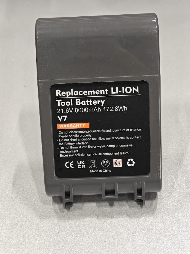 Dyson V7 Vacuum Battery - Used, Minimal Defects, No Box This Dyson V7 replacement battery is a reliable power source for your vacuum cleaner, ensuring optimal performance with a capacity of 21.6V and 8000mAh. Despite minimal cosmetic defects and scratches, it delivers consistent power for extended cleaning sessions. Perfect for replacing an old battery, this unit provides substantial run time, keeping your Dyson V7 vacuum operating effectively. Please note that this battery is sold without the original packaging. It's a cost-effective solution for restoring your vacuum's performance, with easy installation and compatibility specifically designed for Dyson V7 models. Check the photos for more details on its condition and functionality. All items will usually be shipped within 3 business days of receiving cleared payment (excludes weekends and holidays). If you have some questions, feel free to ask and if you are not satisfied with your purchase before opening a case on Ebay, please contact us and we will try to resolve your issues as quickly as possible. Multiple items on one of the listings? If you see that we have multiple quantities of the same item in a photo, please note that it is representative of what you will receive. There may be slight variations in condition between the pictured item and the one you receive. For example, the scratches and dents may differ. Return Notes: 1. For items listed as "working" condition: Returns due to "changed mind," "doesn't fit," or other buyer’s remorse reasons are accepted, but the buyer is responsible for return shipping costs. 2. For items received damaged or not as described: If the item arrives damaged or does not match the listing description, we will cover the return shipping costs. Supporting photos or video evidence must be provided before the return is approved. Please contact us immediately with the details and your order number to resolve the issue efficiently. 3. For items listed as "For parts or not working": Returns are not accepted, as these items are explicitly described as non-functional or for repair purposes only. Buyers acknowledge this condition at the time of purchase. 4. General return guidelines: Items must be returned in the same condition as received, including all original packaging and accessories (if applicable). Returns must be initiated through the eBay Returns Center and include a valid return reason. For corporate or small business customers: If you require an invoice for your purchase, please specify this in the buyer's notes section or reach out to us.