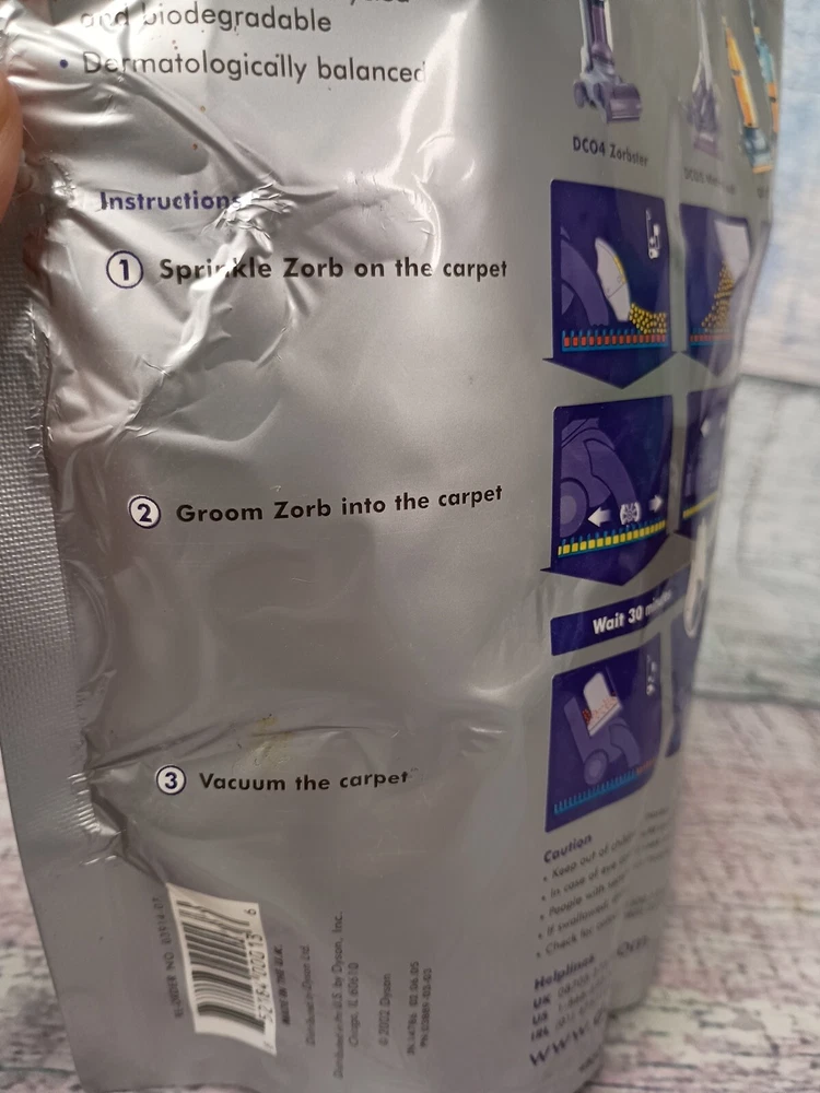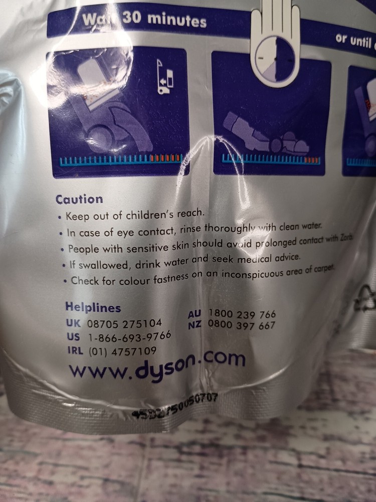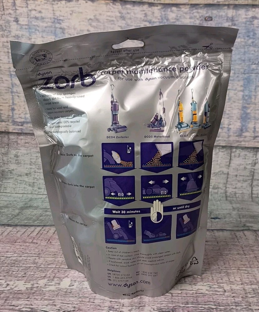 The Dyson Zorb Carpet Maintenance Powder is a 26.5 oz container of carpet cleaning powder designed for various vacuum cleaner brands including Dyson, BISSELL, and Bosch. This powder is specifically made for carpets and is easy to use, with a manual power source and a silver color plastic container. It is suitable for models like Dyson DC31 and Dyson Animal, offering a convenient solution for maintaining clean and fresh carpets in your home.