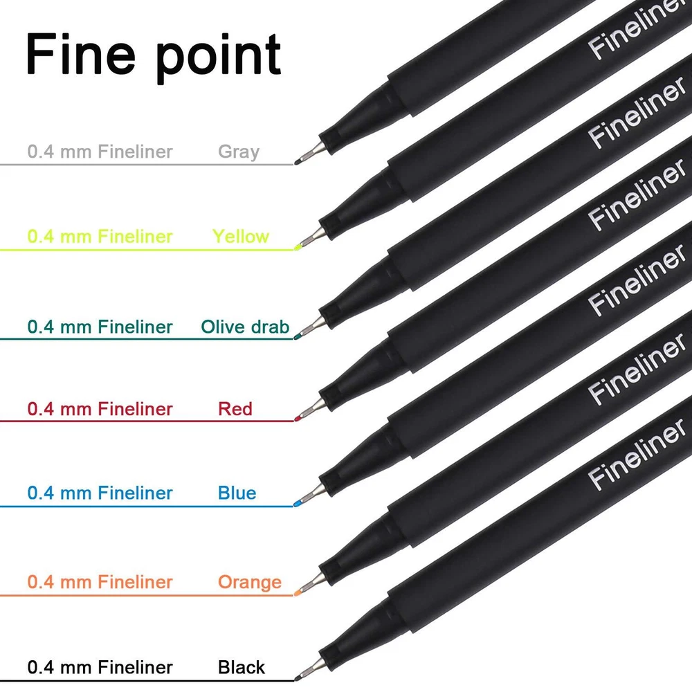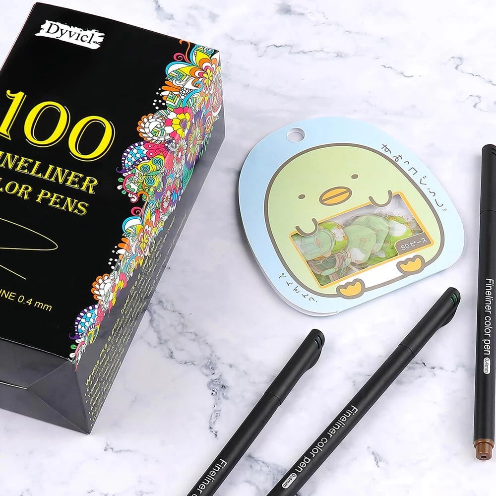 Dyvicl 100 Brilliant Colored Fine Liner Marker Pens Our fineliner color pen set contains 100 colors 0.4mm fine point colored pens, bonus 50 pcs stickers. Unlimited possibilities- never stop creating. Writes like a pen, bold like a marker! 0.4 mm fine tip art markers provides smooth, colorful precision. Clean, crisp writing, Water-based ink, bold colors that won't bleed through paper results could vary based on paper characteristics. Metal nib protects tip from wearing down. The dyvicl fine line pen set is perfect for drawing lines & details, painting, writing, sketch, marker, signing, manga, animation, graphic, design, planner, math book, homework, bills, calendar, illustration, included artists fine-ink drawings and coloring small intricate patterns. Great for home, office, work, business, colleague, church, club, and organazition activities.especially used by the designers of Architecutre, AD, Comic (Manga) and Animation for drawing lines and signing. They are specially designed for artists, designers, students. Quick-Drying, No-Bleed 100 pack assorted colors fineliner marker pens, no duplicates, minimal bleed thru, write almost effortlessly. Quick-drying, water-based ink is specifically designed to resist smearing and not bleed through paper for neat notes, doodles and adult coloring pages. Versatile 0.4 mm Fine Point Ultra-thin 0.4 mm fine point colored pens with superfine, durable metal-clad tip for precision & durability. Perfect for fine, detailed work with rulers & stencils, artists fine-ink drawings and coloring small intricate patterns. outstanding performance in all areas of writing, drawing, coloring. Ergonomically Designed The fashionable designer barrels are slender and nice to hold and work with. Color-coded caps for ease in organization and quick selection of the 100 colors. Keeping your well organized and serving as a perfect premium gift ideal for family, friends, co-workers. 100 Vibrant Colors - Fineliner color pen set contains 100 unique brilliant colors, 0.4 mm fine point colored pens. Assorted color fine tip pens for drawing lines & details, schedules, architecture, sketching, writing, signing, journals, calendars, agendas, notebooks, planners, adult coloring books, art supplies, school supplies, and office supplies Fine Point Pens - Ultra-thin 0.4 mm fine point markers colored pens with a superfine, metal-clad tip for precision & durability. Great for fine, detailed work with rulers & stencils, artists' fine-ink drawings, and coloring small intricate patterns Safe & Non-Toxic Color Ink - Colored art writing drawing porous point pens. Water-based ink, dry safe, minimal bleed thru (except very thin paper), acid-free, non-toxic ink, these fiber-tipped pens create fine lines and intense water-based colors. PP barrel and cap long service life. The fine line pens colored drawing pens conform to ASTM D-4236 & EN71 Bonus Cute Stickers - 50 pcs stickers are included that give you unlimited possibilities- never stop creating. Keeping you well organized and serving as a present for family, friends, neighbors, and co-workers. Colorful pen is great for school, travel, home, office, work, business, colleague, church, club, and organization activities Art Supplies For Everyone - Dyvicl fineliner pens fine point pens are making a present for art-loving children, students, artists, and friends. Please put on the cap after use to avoid dryness and blockage. If you have any concerns, please feel free to reach out to us