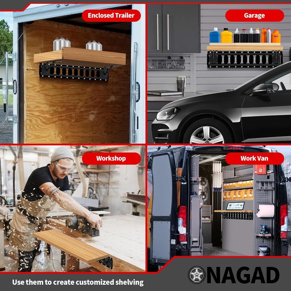 E Track Fixed Shelf Brackets 8 inch 2 Pcs Upgraded Black Heavy 2 Pcs, Cramped Space (SIGH): Tired of cramped enclosed trailers and work vans with limited storage options? ONAGAD heavy duty e track L shaped fixed shelf track brackets are designed specifically for tight quarters, provide a smart solution to create extra storage space, saving room and reducing clutter. Maximize space utilization and make your vehicle feel “bigger”! Wider Bearing Surface: The unique patented design of the bearing surface of the e-track L fixed shelf bracket provides a larger area to distribute weight and secures the boards with more holes for enhanced stability, which not only improves the safety, functionality and flexibility of the shelves, but also provides a sturdy and reliable platform for storing various items, making it a more practical and efficient storage solution. *NOTE: BOARD NOT INCLUDED. Durable Material: 2 Pack E Track Brackets are miracle workers! Made of thicker high-strength steel, which have strong load-bearing capacity, not easily deformed, more durable and harder than the ordinary steel, the finish with black electrophoretic coating that can stand up to the toughest weather, protects against corrosion and rust for long-term use. The bracket has been upgraded to the sturdiest construction in wall brackets currently - the Triangle Shape, which can hold up to 220 lbs. Easy to Install: Each package includes an installation guide and high-quality hardware for easy installation. You can install these heavy-duty etrack shelf brackets easily and quickly by just snapping them into the anchor points of E-track or e track single slots. No E-tracks? The kit comes with long screws and expansion anchors for supporting the L-shaped e-track brackets, as well as short screws for securing the board, so you can mount on the wall directly! Shipping We offer FREE shipping on all orders! We ship within Three business days of payment, usually sooner. We use a selection of shipping services such as UPS, FedEx, USPS etc. We only ship to the lower 48 states, no APO/FPO addresses or PO Boxes allowed. Local pickups and combined shipping options are not provided at this time. Return You can return a product for up to 30 days from the date you purchased it. Any product you return must be in the same condition you received it and in the original packaging. Please keep the receipt. Customer satisfaction is very important to us. If you have any problem with your order, please contact us and we will do our best to make you satisfied. Contact Us If you have any queries, please contact us via ebay. We usually respond within 24 hours on weekdays. Please visit our eBay store to check out other items for sale! Thank you for shopping at our store.