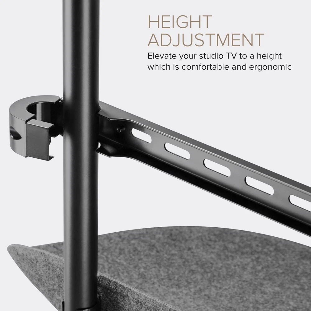 TV EASEL STAND: This television studio display is the perfect home for your new flat-screen TV, whether kept in your living room or bedroom corner. The easel has a max load weight of 88lbs (40kg), supporting TV sizes from 55"-70", making it fairly universal for modern flat-screen televisions. HEIGHT ADJUSTABLE: Your studio television easel will feature a height adjustable bracket, sitting on a 25.8" pole, meaning you can position your TV in the style that suits you. Whether you want it lower for exhilarating sports action or higher for the theatre experience, you can with this TV easel. MINIMALIST TV STAND: The Eyes 17 is a stunningly minimalistic TV stand inspired by simple Scandinavian design principles, making it fit nicely into any household or studio apartment setting. We make the slim TV stand black and neutral wooden, to act as an artistic frame for your flat-screen TV. TV STAND SHELF: Along with the stand itself, we build a TV shelf directly onto the Eyes 17, giving you the perfect place to store magazines, remotes, webcams, laptops, and anything else. This makes the Eyes 17 extra functional, beyond being a stunning piece of studio apartment furniture. VERSATILE & PORTABLE: This wood and black metal TV mount stand isn’t particularly heavy, weighing just 18.7lbs (8.5kg), making it easy to shift around your apartment or house. Along with the weight, due to its versatile style, you can set it up in any room and it will fit in smoothly.