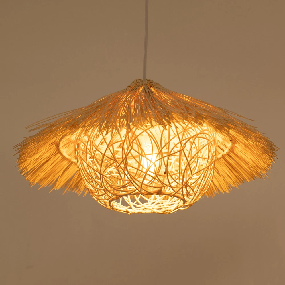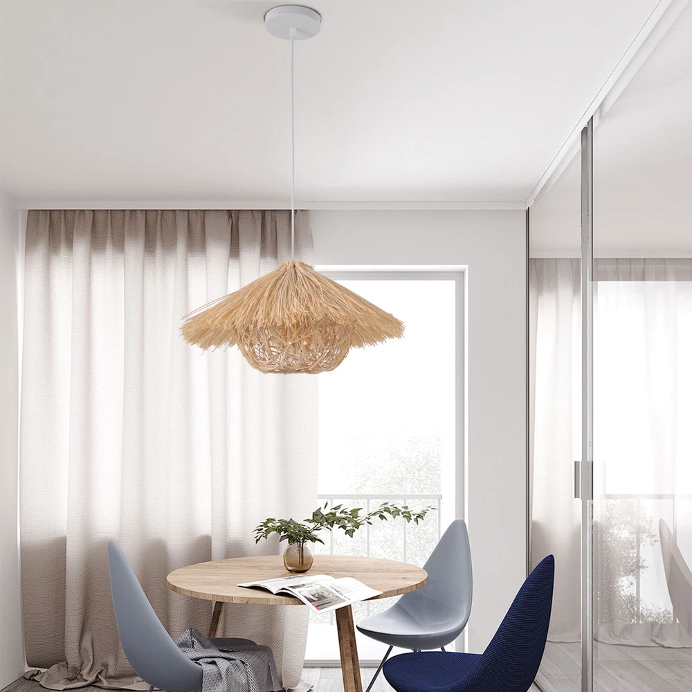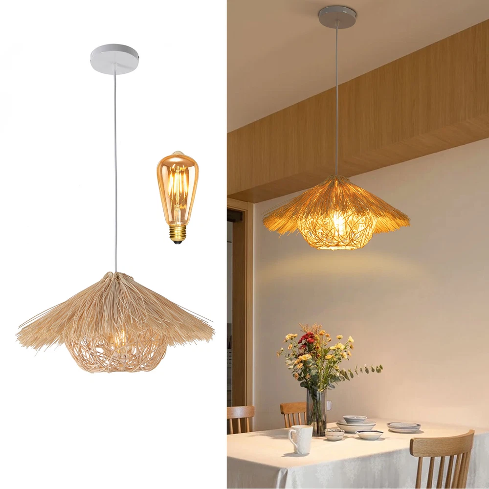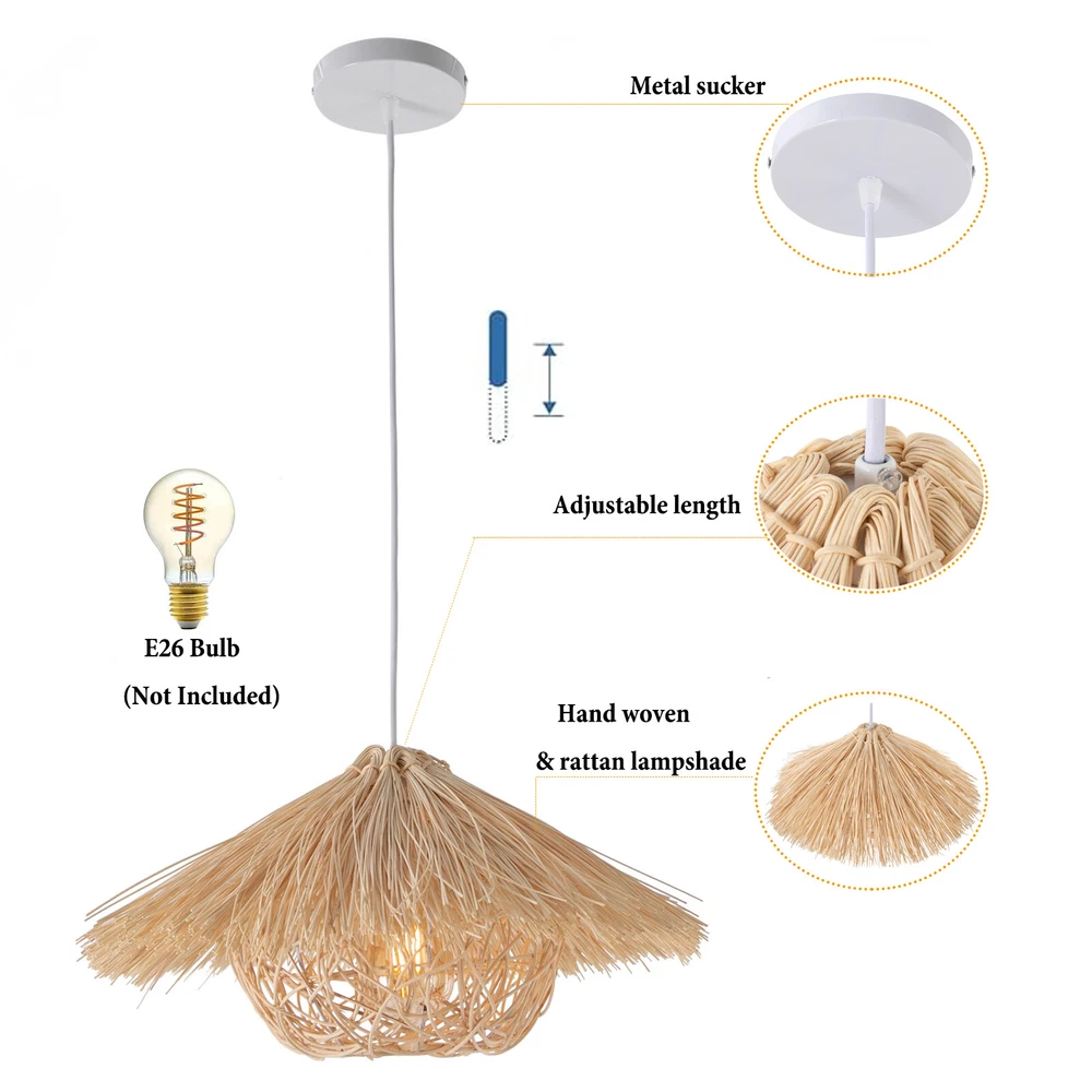 E26 Wicker Rattan Shade Pendant Light Hand-Woven Farmhouse Ceiling Lamp Fixture