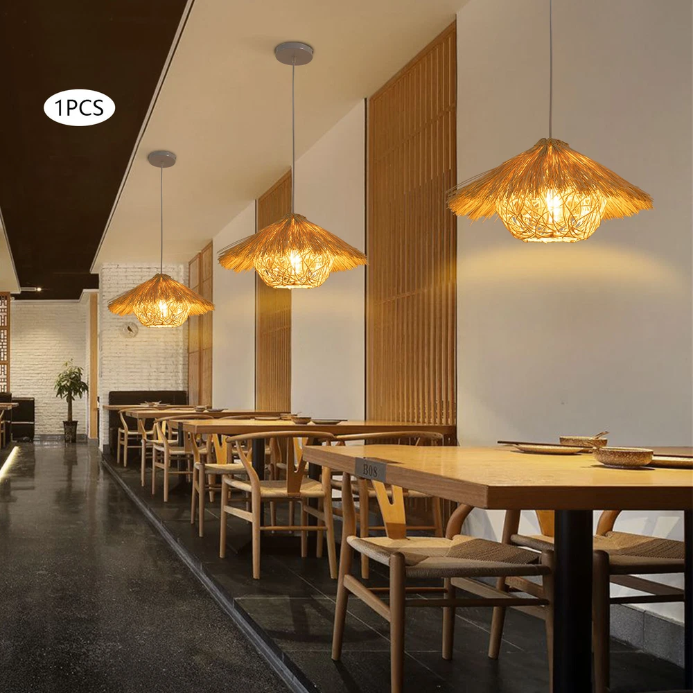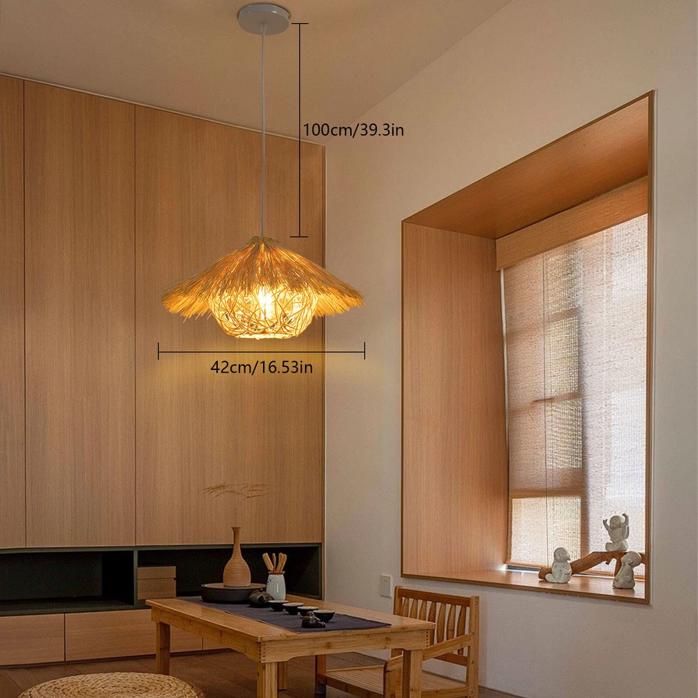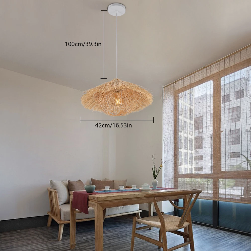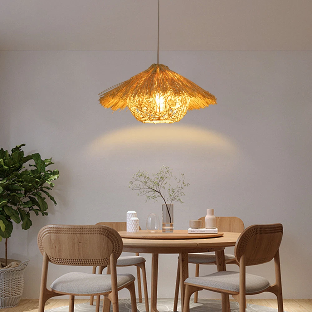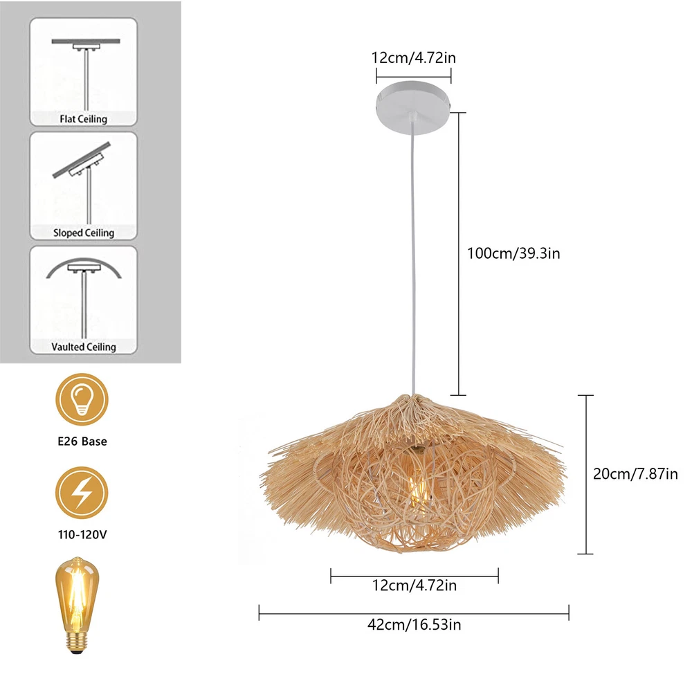 E26 Wicker Rattan Shade Pendant Light Hand-Woven Farmhouse Ceiling Lamp Fixture