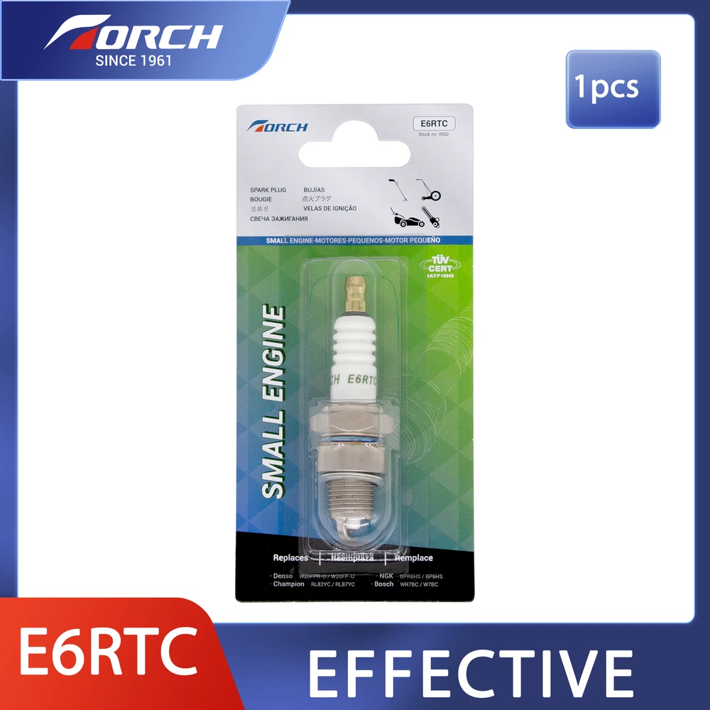 Country/Region of Manufacture: China Brand: TORCH Core Material: Copper Material: Alloy Steel, Copper Vehicle Service Type: Motorcycle Seat: Flat Seat Compatible Model: for NGK BPR6HS, for BOSCH WR7BC, for CHAMPION RL82YC, for DENSO IWF20 Color: Silver Model: E6RTC Number in Pack: 1 Item Diameter: 0.81 Inch Item Length: 0.5 Inch Compatible Brand: for NGK, for Bosch, for Champion, for Denso Type: Spark Plug gtin13: Does not apply UPC: Does not apply