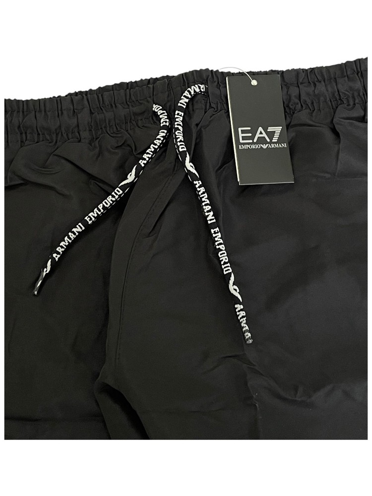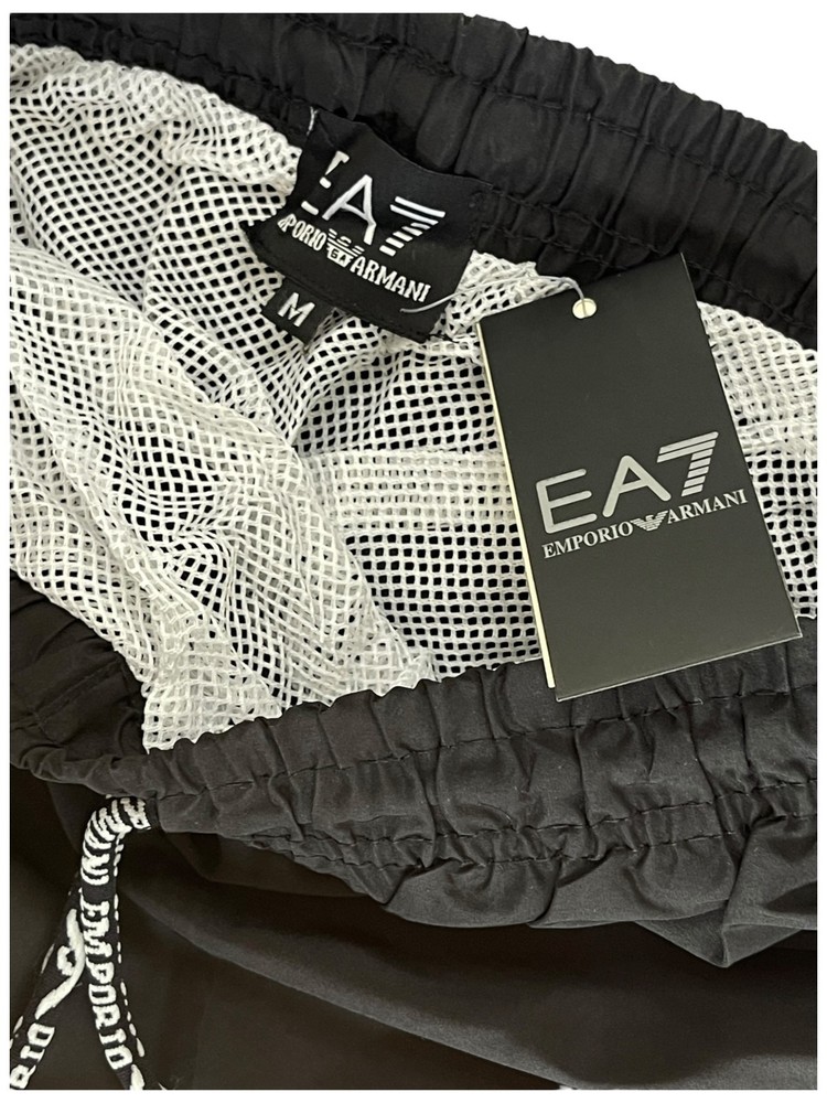 Brand: Emporio Armani Performance/Activity: Swimming Size Type: Regular Swim Bottom Style: Swim Shorts Type: Bottom Material: 100% Polyester Vintage: No Lining Material: Mesh Theme: Sports Department: Men Personalize: No Fabric Type: Blended Fabric Size: M Garment Care: Machine Washable Character: EA7 Pattern: Solid Features: Pockets, Drawstring Color: Black