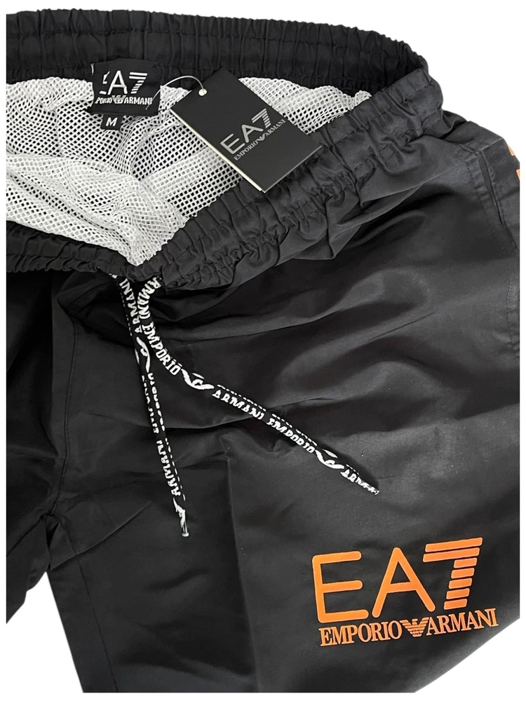 EA7 Emporio Armani Black & Orange Swim Shorts Trunks Size Medium NWT