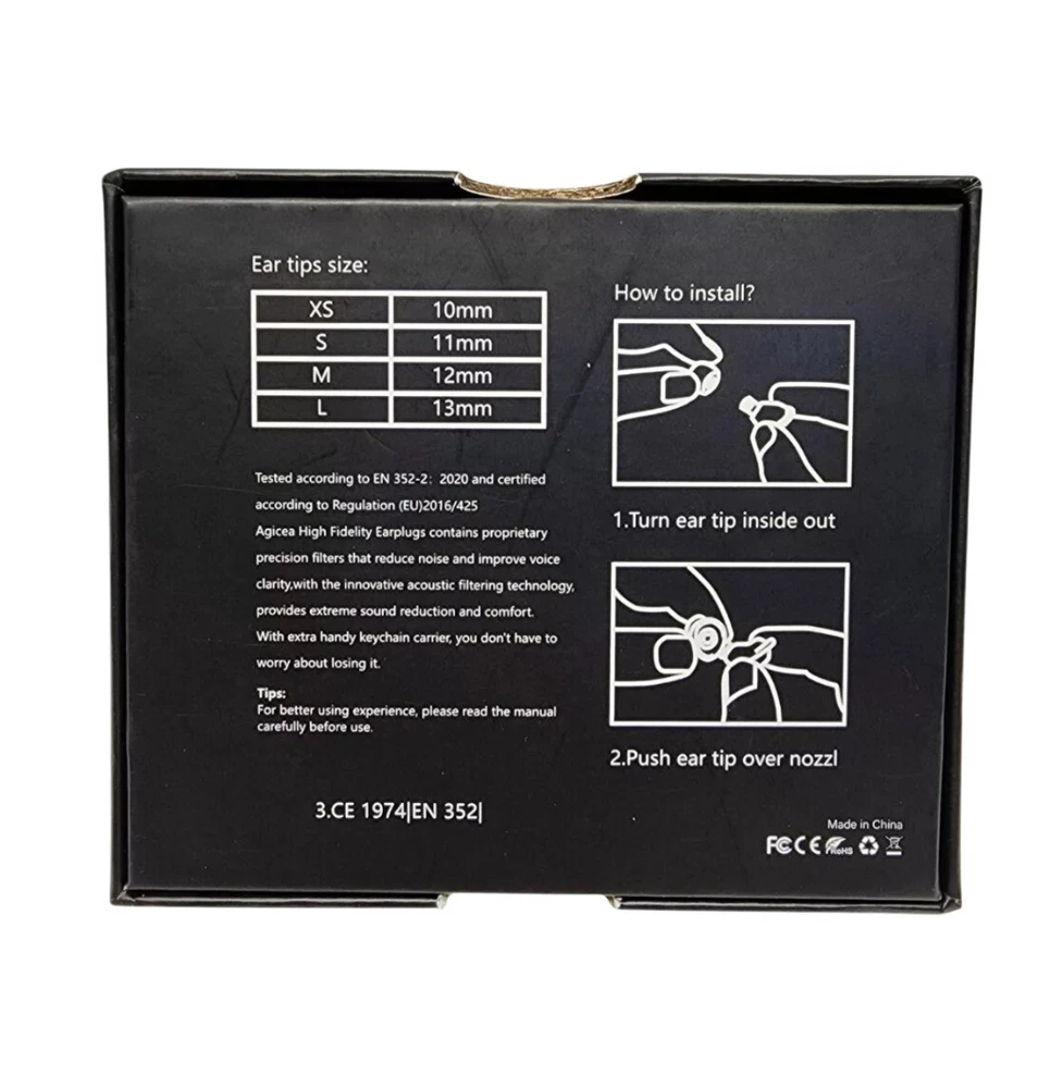 The product is a pair of AGICEA ear plugs designed for noise reduction, with a noise cancelling rating of 31dB. These ear plugs provide hearing protection by reducing noise levels and are suitable for environments where loud noises are present. Ear tips on size XS-L