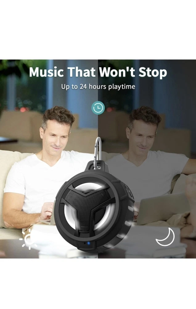 EBODA Bluetooth Shower Speaker, Portable Bluetooth Speakers, IP67 Waterproof Wireless Speaker with LED Light, Floating, 2000mAh, True Wireless Stereo for Kayak, Beach, Gifts for unisex -Black Brand EBODA Speaker Maximum Output Power 5 Watts Frequency Response 50 Hz Connectivity Technology Bluetooth Audio Output Mode Stereo Mounting Type Handlebar Mount, Freestanding IP67 WATERPROOF SHOWER SPEAKER & FLOATING Waterproof Shower speaker is thoroughly resistant to water, dust and sand. You can get it wet, muddy, covered in snow, and then hand wash it when you go in. The water vapor in bathroom will never interfere with the sound quality of the waterproof speaker. its IP67 protection even withstands complete submersion in up to one meter of water for up to 30 minutes, and even float after taking a plunge. ( When the speaker is submerged or the speaker area is waterlogged, there will be resistance when the speaker is pronounced and the volume may be reduced.
