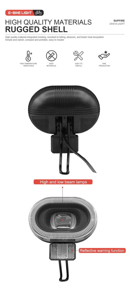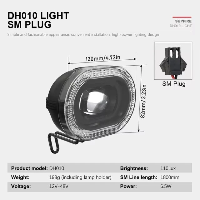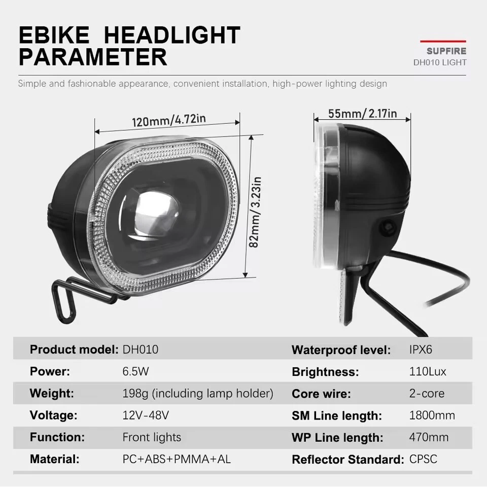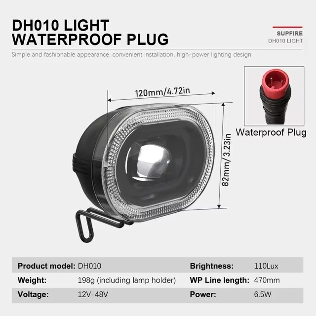 SAFE & SECURE SHOPPING 100% SATISFACTION GUARANTEED FAST SHIPPING E-bike Electric Bicycle Motorcycle DC 12V-48V 110Lux Headlight Waterproof Product Description Feature: 1. High Brightness: High brightness lamp beads, energy saving and environmental protection. 2. Fast Cooling Design: Low heat, low energy consumption, good heat dissipation, greatly extending the service life of the lamp. 3. Adjustable Light Angle: The light angle can be adjusted. The bracket is rotatable, easy to install, and can be adjusted as required. 4. Safe Night Riding: The headlight is a necessary accessory for electric bicycle or motorcycle. High brightness horn headlights, safe riding at night. 5. Satisfaction Guarantee: We strive to provide each customer with the highest standard of customer service to ensure you have a pleasant shopping experience. If you have any issues, inquiries or need assistance, please feel free to contact us directly. Specification: Name: DH010 headlight Material: PC+ABS+PMMA+AL Core wire: 2pin Voltage: 12V-48V Weight: 198g (including lamp holder) Power: 6.5W Function: Front lights Waterproof level: IPX6 Brightness: 110Lux SM Line length: 1800mm WP Line length: 470mm Package includes: 1*Front Light Payment Shipping Returns Contact US Payment Payment must be completed within 5 days. If you have any problems about payment, please contact us via ebay message. Shipping We only ship to confirmed ebay Order addresses. Please comfirm that your Order address is in line with your shipping address. Please kindly note that the combined shipping is not provided because the shipping fee is calculated by weight. Also, the each additional item means exactly the the same color and size. It takes about 7-15 working days to US; about 10-30 working days to other countries. Transit time may be a little delayed because of the bad weather and customs inspection. If you do not receive your item within 30 working days since payment finished, please contact us immediately for further assistance. Returns Items can be returned for exchange or refund within 30 days from the date you receive your merchandise. We are not responsible for any purchase after this 30-day period. Return shipping is the responsibility of buyer unless the return is a result of our mistake (i.e., your receive the wrong item). We will pay for shipping replacement back to you if an exchange is requested. Contact US Customer satisfaction is very important to us and our feedback rating reflects this satisfaction. If you have any questions, Our customer service staffs welcome feel free to contact us by EBAY message box. We strive to answer all questions and resolve any problems as quickly as possible. Copyright © 2022 Tongtool On Dec 16, 2024 at 22:05:39 PST, seller added the following information: