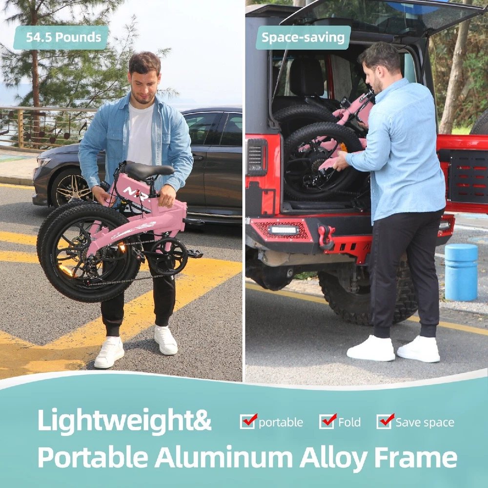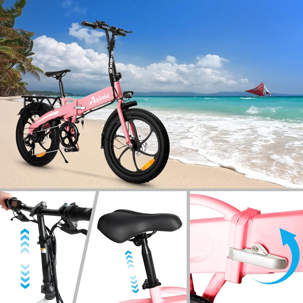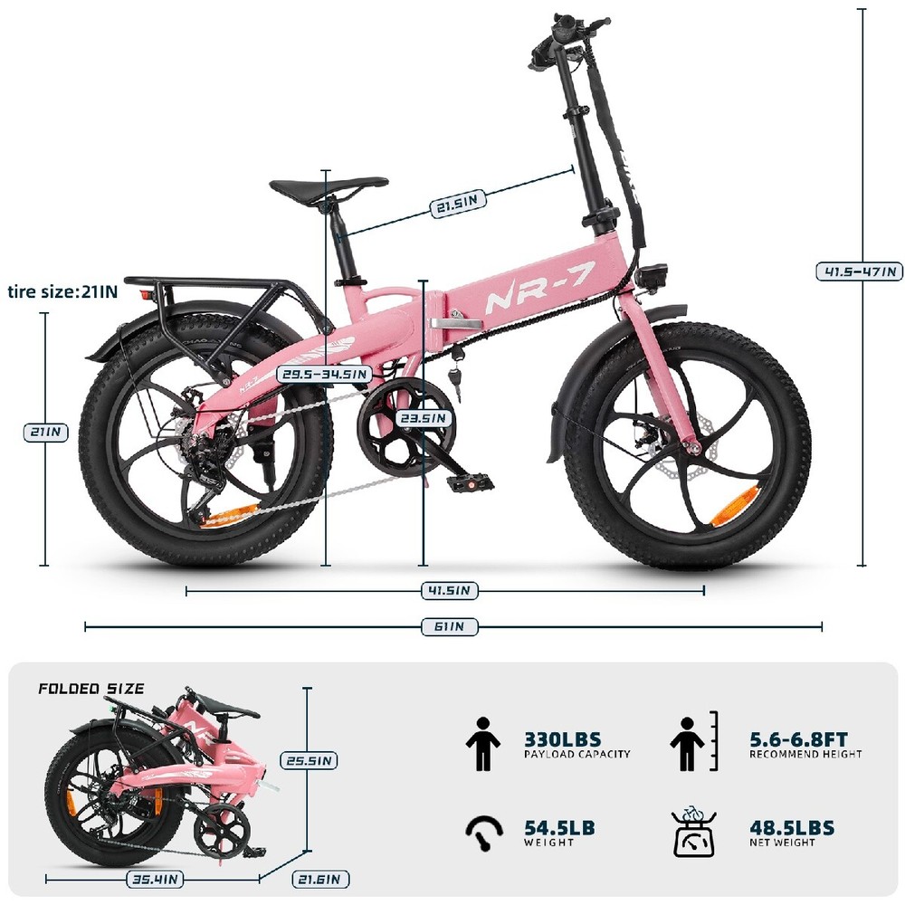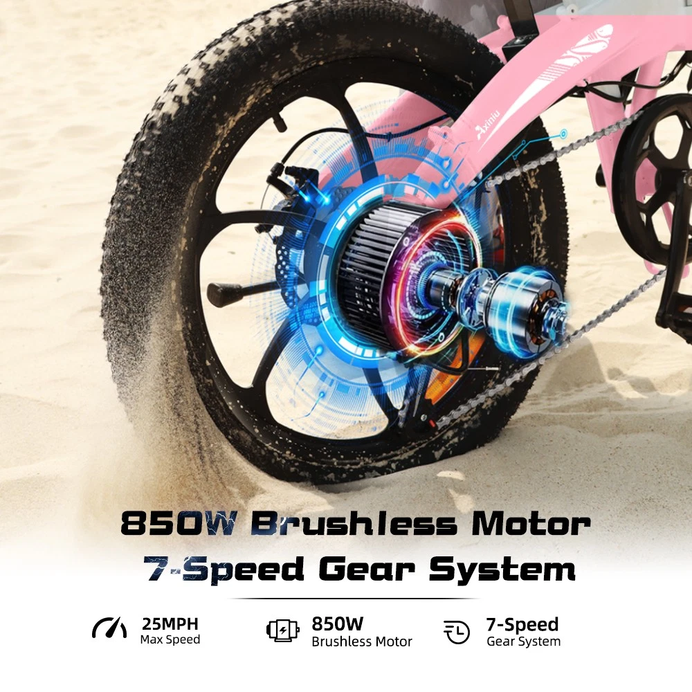 Motor Type: Rear Hub Motor Brake Type: Disc Brake - Mechanical Tire Type: Fat Tires Model Year: 2025 Shifter Style: Grip Shifter UPC: Does not apply Brand: Axiniu gtin13: Does not apply Country/Region of Manufacture: United States Voltage: 48 V Number of Speeds: 7 Speed Gear Change Mechanism: Derailleur Gears Frame Size: 20 in Wheel Size: 20 in Material: Aluminum Features: Adjustable Seat, Bicycle Speaker, Display, Fenders, Front Light, Lithium Ion Battery, Rear Light, Suitable for Seniors, Rear Bike Rack, Lock Bike Type: E-Folding Bike Suspension Type: No Suspension Motor Power: 850W Handlebar Type: Flat Bar Charging Time: More Than 5 Hours Maximum Range: Up to 50 mi Maximum Speed: 25 mph EAN: Does not apply Department: Unisex Adults Frame Number: NR-7