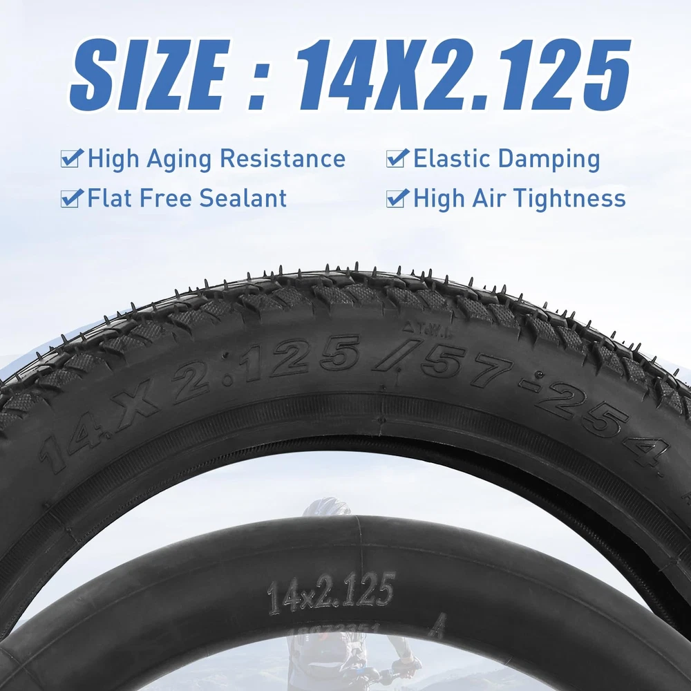 2 Pack E-Bike Tire Kids Bike Tire 14x2.125 with 2 Tubes Strong Grip Compatible Replacement Bicycle Tire for Electrc Bicycle Black Specially designed for electric bikes, more wear resistance and durable. It is also good for kids bikes. High Quality Rubber: Our rubbers are made of wear-resisting rubber, which is long lasting and elastic, inflation to 35-43 PSI. (240-300 kPa) Strong Grip Sufface: The pattern of the sufface is deep to offer strong grip, ensure your safe and stable riding. High Strength: Protective steel layer under tread provides 30% more strength and puncture resistance. Long Life: The tire is paded with high quality nylon, strong and non-defrmation suitable for e bike, could use for long ride. Shipping We offer FREE shipping on all orders! We ship within Three business days of payment, usually sooner. We use a selection of shipping services such as UPS, FedEx, USPS etc. We only ship to the lower 48 states, no APO/FPO addresses or PO Boxes allowed. Local pickups and combined shipping options are not provided at this time. Return You can return a product for up to 30 days from the date you purchased it. Any product you return must be in the same condition you received it and in the original packaging. Please keep the receipt. Payment We accept payment by any of the following methods: PayPal Please pay as soon as possible after winning an auction, as that will allow us to post your item to you sooner! Feedback Customer satisfaction is very important to us. If you have any problem with your order, please contact us and we will do our best to make you satisfied. Contact Us If you have any queries, please contact us via ebay. We usually respond within 24 hours on weekdays. Please visit our eBay store to check out other items for sale! Thank you for shopping at our store.