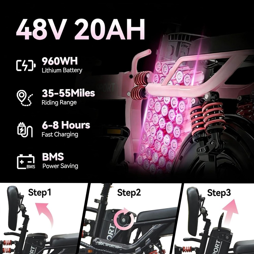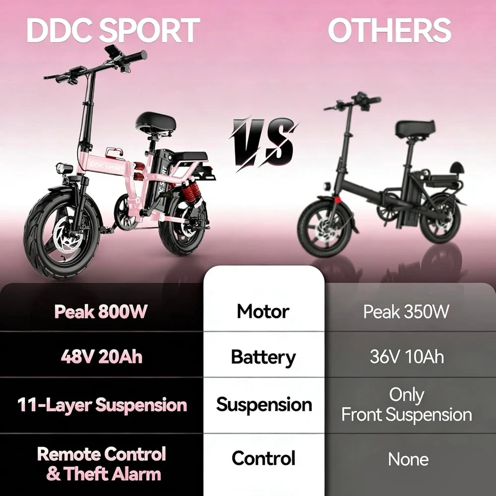 ใ๐๐๐๐ค ๐๐๐๐ ๐๐จ๐ฐ๐๐ซ๐๐ฎ๐ฅ ๐๐จ๐ญ๐จ๐ซใThe electric bike is built with a peak 800W brushless motor, reaching up to 25MPH and supporting a max load of 265LBS. It easily tackles small slopes during rides, eliminating worries about insufficient power. ใ๐๐๐ ๐๐๐๐ก ๐๐๐ฆ๐จ๐ฏ๐๐๐ฅ๐ ๐๐๐ญ๐ญ๐๐ซ๐ฒใThe adult folding ebike features a large-capacity 48V 14Ah lithium-ion battery, offering 35-55 miles of range in electric assist mode. Its removable design lets you charge the battery easily in your apartment or officeโno need to carry the e-bike upstairs, ensuring great convenience and ease. ใ๐ ๐จ๐ฅ๐๐๐๐ฅ๐ & ๐๐จ๐ซ๐ญ๐๐๐ฅ๐ ๐๐๐ฌ๐ข๐ ๐งใThe electric bike for adults is easy to fold, and the folded size is 35.4*21.7*27.2 inches, which can be easily put into public transportation/apartments/offices. The upgraded cool design makes you the focus of attention when commuting, shopping, and leisure riding. ใ๐๐-๐๐๐ฒ๐๐ซ ๐๐ก๐จ๐๐ค ๐๐๐ฌ๐จ๐ซ๐ฉ๐ญ๐ข๐จ๐ง ๐๐๐ฌ๐ข๐ ๐งใThe portable electric bike features 11 shock absorption zonesโincluding middle double shocks, hydraulic double shocks, seat bag double spring shocks, and rear seat four shocks. The ebike handles bumpy roads with ease, reducing riding discomfort via coordinated shock absorption for a smooth urban ride, suitable for men, women and teens. ใ๐๐๐ฌ๐จ๐ฅ๐ฎ๐ญ๐ฅ๐ฒ ๐๐จ๐ฆ๐๐จ๐ซ๐ญ๐๐๐ฅ๐ ๐๐ข๐๐ข๐ง๐ ใThis outstanding adult e-bike boasts an ingenious folding structure, with quick-release designs for the handlebars, frame, seat and pedals. Rearview mirrors let you effortlessly check the road behind, keeping you relaxed and in control. The secure phone mount keeps your device visible, letting you focus on riding without fumbling. ใ๐๐๐ ๐๐ฎ๐๐ฅ๐ข๐ญ๐ฒ ๐๐๐ซ๐ฏ๐ข๐๐ใThe lightweight ebike arrives 90% assembled, allowing you to finish the rest quickly and easily. M1 Ebike has passed the compliance testing, ensuring secure purchase and riding. 12 months of quality support ensures you have no worries about after-sales issues. For any questions or assistance needed, feel free to contact us. Package Included: Ebike*1, Battery*1, Charger*1, User Manual*1, Tool Kits*1, Front Carrier*1, Phone Holder*1, Rearview Mirror*2, Bottle Holder*1, Remote Control*1 Note: Our products have been certified under UL2849 safety standards.