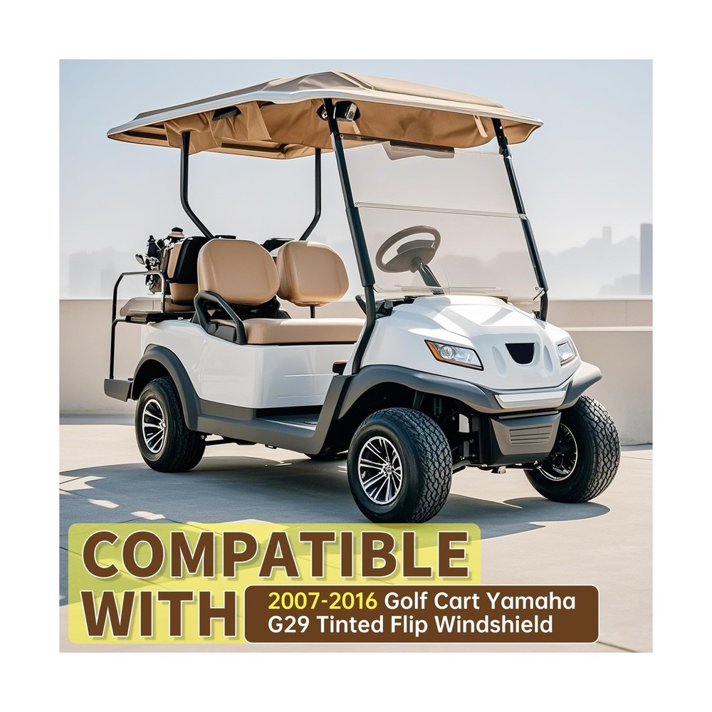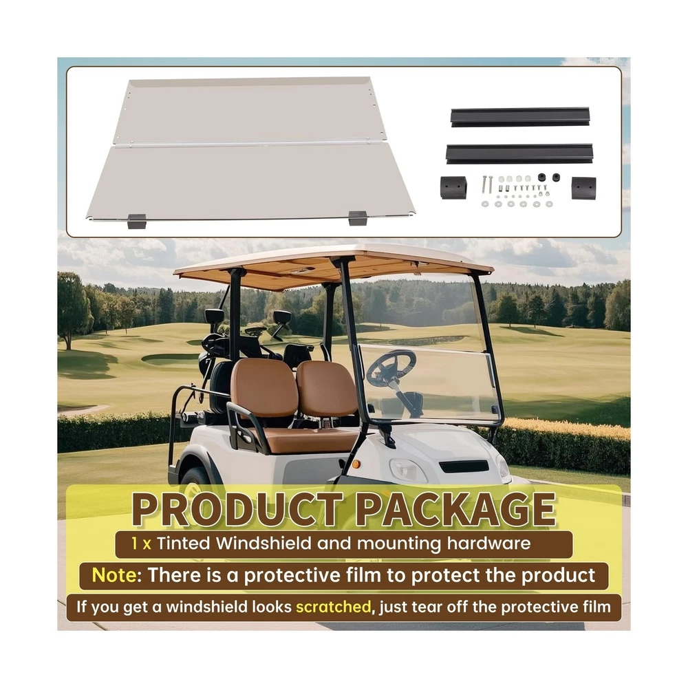 ECOTRIC Tinted Windshield Compatible with 2007-2016 Yamaha Drive G29 Gas or Electric Models Folding Down Impact Resistant Windshield 38.75"W x 35.75"H Description Features: Function: The windshield can block raindrops, and other small particles from blowing into your eyes, allowing you to see the road ahead without affecting your vision, the folding design of this windshield will meet any needs of riders, when in hot summer, you can easily folding the upper part of the windshield to let the wind in and make you feel cool. Approximate Dimensions: 38.75"W X 35.75"H. High quality of acrylic protecting the windshield from shattering and cracking. The edges are polished and beautifully finished. In addition, the tined color will reduce solar glare and radiation. Package include: 1pc of windshield! We will provide with mounting accessories. Easily attaches to your existing windshield frame!! No drilling or additional hardware required!! Instruction is Not Included!! Installation&Note: The windshield is covered with a protective film to protect the product from damage or scratches. If you receive a windshield that looks scratched, please don't worry, just tear off the protective film. Professional installation is highly recommended. Product Details: Material: Acrylic Orientation: Front Color: Tinted Brand: ECOTRIC Vehicle Service Type: Carts Manufacturer: ECOTRIC Automotive Fit Type: Vehicle Specific Fit Model: AT-58-S Item Weight: 10.16 pounds Package Dimensions: 38.58 x 21.26 x 11.42 inches Item model number: AT-58-S Is Discontinued By Manufacturer: No Exterior: Tinted Manufacturer Part Number: ECOAT-58-S Date First Available: August 3, 2019 Delivery We Do Not Ship Outside of the Continental US. Return Policy All items qualify for returns within 30 days of receipt. Seller is responsible for return shipping on any item that is not damaged. Feedback We take our reputation seriously, we buy and sell online, so we understand the value of trust. If you are unsatisfied with your order, please contact us and we will work with you to resolve it to your satisfaction. WELOCME TO BUY