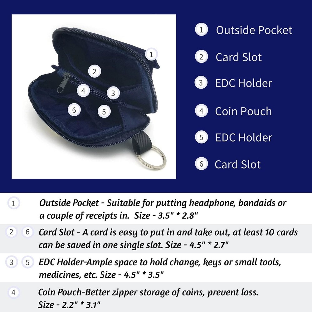 This purse is 5.5"*3.6"*1.2", 2.4 oz, made of Nylon. It is suitable to storage small items as an EDC pouch, it is also a perfect gift as children's first wallet. Simple and practical, we hope you like it at first sight and feel its practicality while using it. Light weight, this pouch is equipped with hooks, and we can wear it as a neck wallet or clip it onto pants. There are 2 pockets inside, one on each side, a small coin pocket, and one outside pocket. We put a lot of time and effort into making sure it is of good quality, hoping that this pouch would accompany and help every day. [SPECIFICATION]: The dimension is 5.5"*3.6"*1.2",made of high quality waterproof nylon material, sturdy and durable.2 x large interior cash pocket .2 x roomy card slots for cards and driver's license.1 x exterior pocket for coins or folded receipts. [Detachable Decoration]: The little decoration (dinosaurs/owls/crocodiles) on side pocket is detachable, you can take it off if too fancy for you. [Practical and Versatile]: 1 x key ring for keys,1x D Ring Shape Carabeaner,1x Lobster clasp Keychain,1x neck Lanyard,the freebies support as many occasions as it could for functional use. [Sportive]:Great for outdoor activities such as bike riding or going to the beach,can be used as travel neck wallet if you dont want to carry a thick leather wallet. [Widely Use GIFT]: This is a unisex wallet yet ideal gift which fits well for kids, man and woman in all ages. For kids,this would be a cool first wallet with dinosaurs brooch,for grandpa,it would be a nice wallet to keep the small items,while for the young people it will be great EDC wallet to secure valuables.