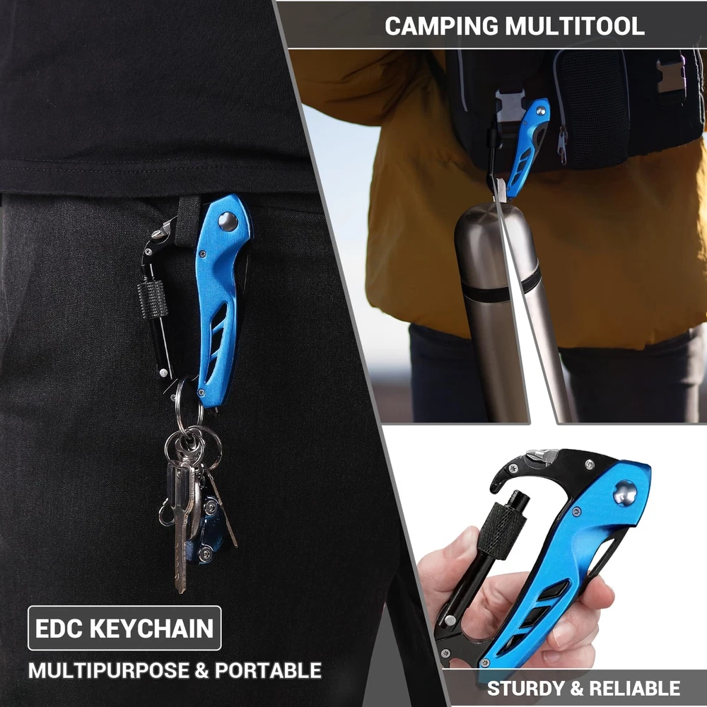 EDC Multitool Carabiner with Knife Bottle Opener Window Breaker and Screwdriv...