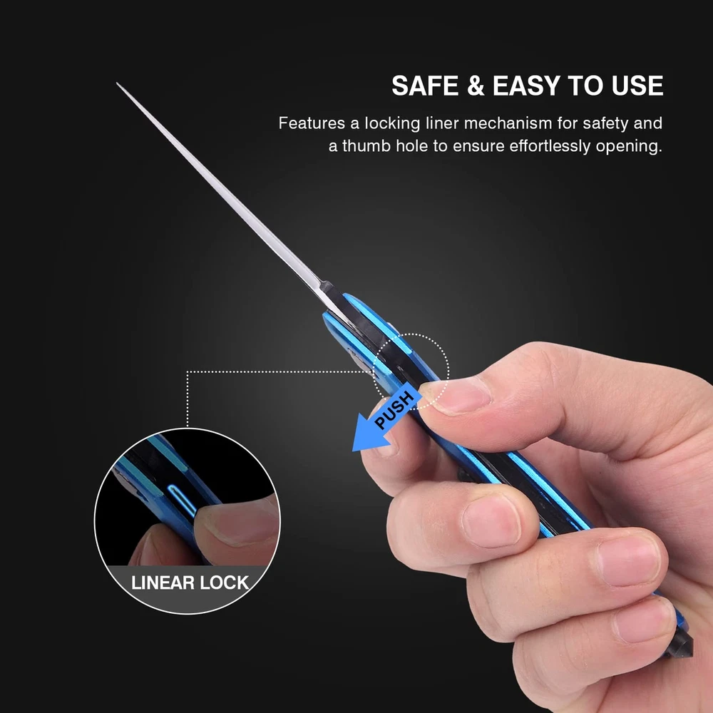 EDC Multitool Carabiner with Knife, Bottle Opener, Window Breaker and Screwdriver, Survival Knives Tools for Men Outdoor Camping (Blue) 6 in 1 Multitools: This multi tool includes a knife with sharp blade, a bottle opener, a glass breaker for emergency situations, a Phillips screwdriver and a slot screwdriver. A nice survival tools gear meeting various tasks outdoor. Sturdy and Reliable: The whole carabiner multitool is constructed of premium stainless steel, which effectively prevents corrosion and ensures long term durability. You can use it as a heavy duty locking carabiner buckle like hanging hammock while is not intended for supporting human weight when rock climbing. Safe and Easy to use: The knife for men features a locking liner mechanism for safety and a thumb hole to ensure effortlessly opening, never worrying about unexpected closure. Compact and Portable: Size 4.5"L X 2.2"W, 3.8 OZ. This edc hiking gear can be easily and conveniently attached to backpacks, belt loops and more. Just remember to twist the locking latch for an optimal hold when everything is done. Multi-function: All tools are easy to use. Perfect for camping, backpacking, hiking, hunting and other outdoors activities. A nice gift for men dad husband. Shipping We offer FREE shipping on all orders! We ship within Three business days of payment, usually sooner. We use a selection of shipping services such as UPS, FedEx, USPS etc. We only ship to the lower 48 states, no APO/FPO addresses or PO Boxes allowed. Local pickups and combined shipping options are not provided at this time. Return You can return a product for up to 30 days from the date you purchased it. Any product you return must be in the same condition you received it and in the original packaging. Please keep the receipt. Payment We accept payment by any of the following methods: PayPal Please pay as soon as possible after winning an auction, as that will allow us to post your item to you sooner! Feedback Customer satisfaction is very important to us. If you have any problem with your order, please contact us and we will do our best to make you satisfied. Contact Us If you have any queries, please contact us via ebay. We usually respond within 24 hours on weekdays. Please visit our eBay store to check out other items for sale! Thank you for shopping at our store.