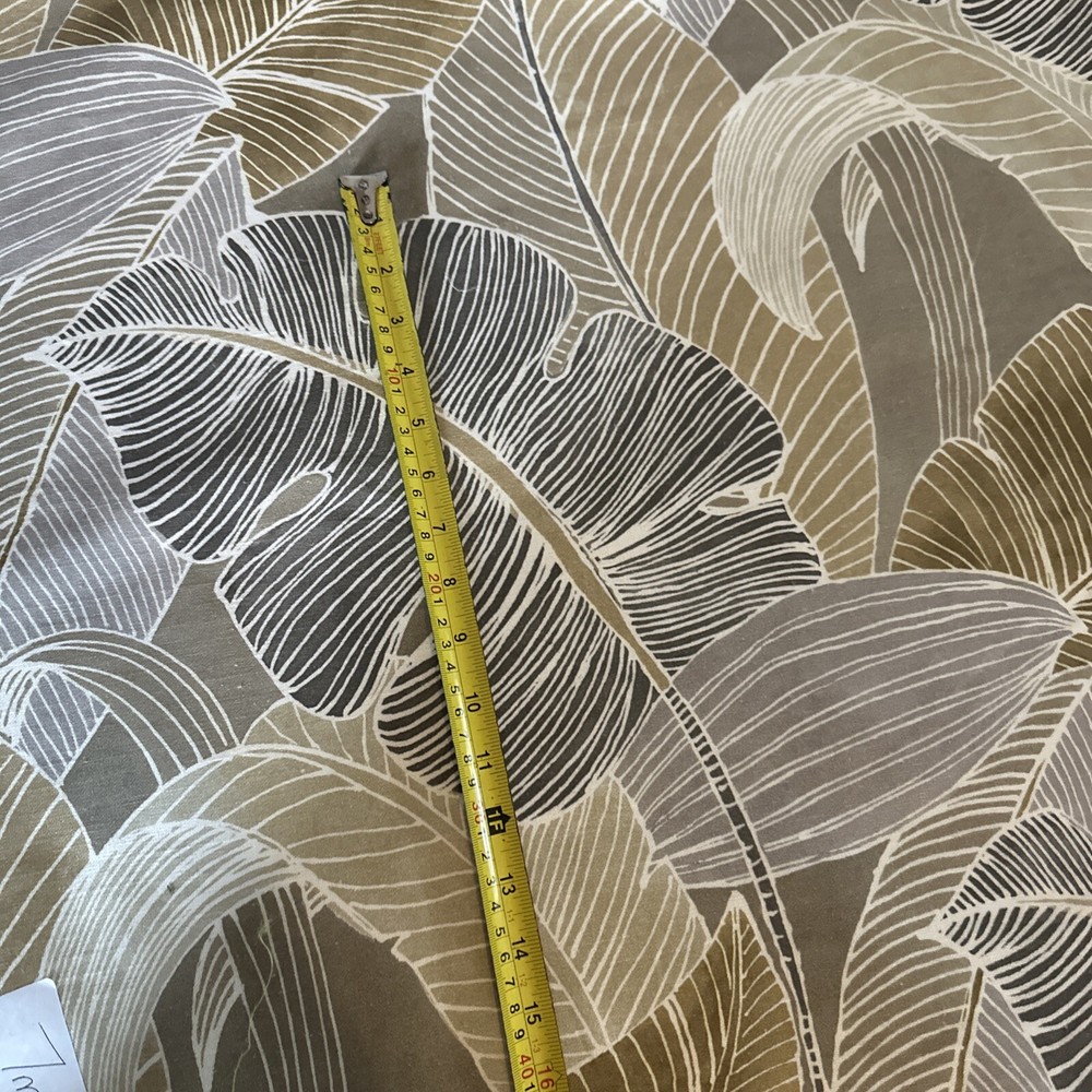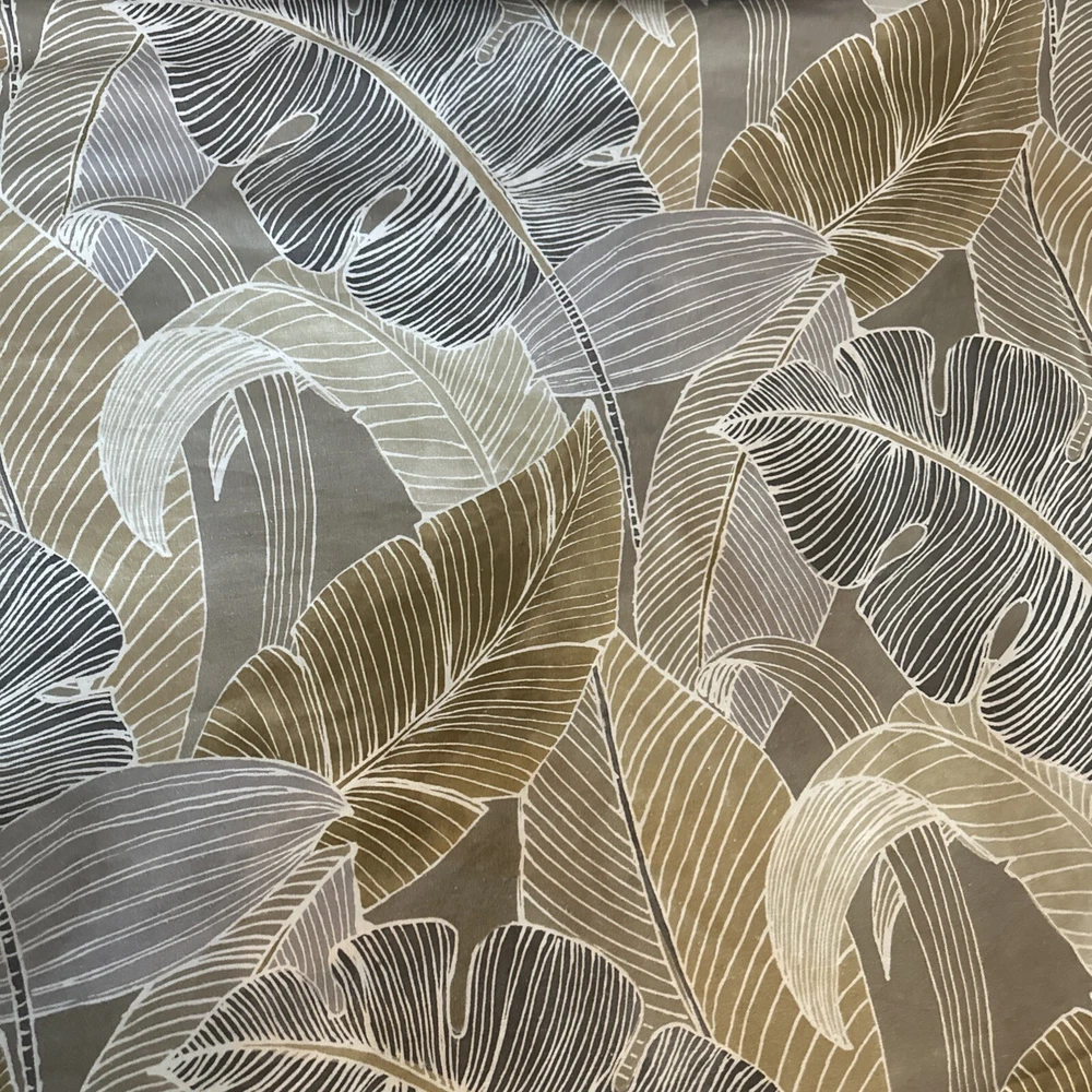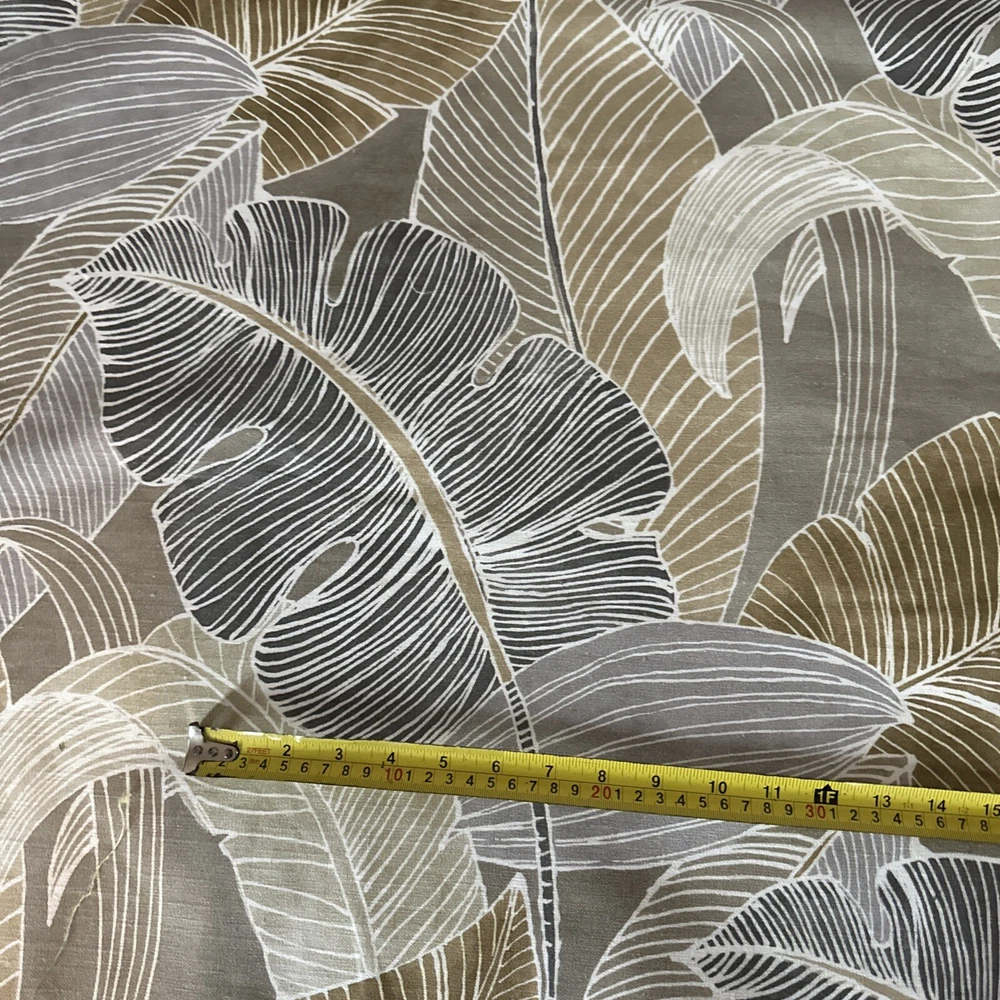 Embrace the warmth of the EDINBURGH WEAVERS Palm Leaf fabric, a stunning choice for those seeking to add a touch of nature-inspired elegance to their home or creative project. This Amber Gold colourway brings a rich, sun-soaked ambiance into any space, perfect for draping, curtains, cushions, or upholstering a statement piece. At a width of 54 inches and a length of 7 metres, this medium-weight fabric is versatile for both small and large-scale applications. Crafted from a premium blend of viscose and linen, the fabric's digitally printed pattern captures the essence of palm leaves, creating an inviting and relaxed atmosphere. Proudly manufactured in the United Kingdom, this roll of fabric is a testament to quality and style, suitable for a variety of projects and settings.