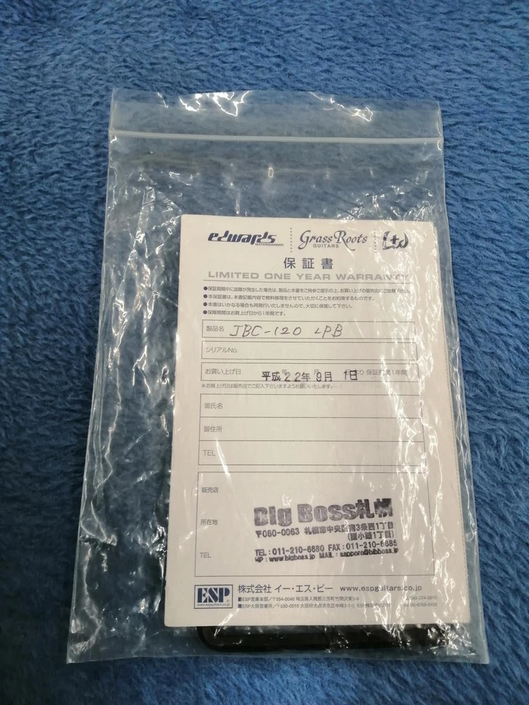 EDWARDS Jazz Bass Type JBC-120 Description Truss rod: plenty of room Frets: plenty of room The body and neck have a cigarette smell Recommended as a more advanced electric bass than an introductory model Accessories Gig bag: smells of cigarettes, included Shipping Shipping by EMS or FedEx,UPS (international express mail service, with Tracking and Insurance, handling cost). EMS takes 1-2 weeks, FedEx and UPS takes 1 week. We will ship your item within 5 business days with carefully packed. Sometimes the neck is removed to protect the instrument from tough international shipping. Returns Money back guarantee within 30 days. We offer 30 days money back guarantee for defective products. The buyer must pay for returning it back to us. When there were defects in a item, please contact us. About Us If you have any problem, please contact us. Your satisfaction is important to us. We have results that I sold of tens of thousands of by Internet sale. We have pride ourselves in the Quality of items we offer. All our items has been checked by technician. As every seller dealing with pre-owned branded items in Japan we have as well license from local government to offer services of this kind. We are officially registered as legal business and we have to comply with all rules and regulations including tax requirements from the Japanese government. International Buyers - Please Note: Import duties, taxes and charges are not included in the item price or shipping charges. These charges are the buyer's responsibility. Please check with your country's customs office to determine what these additional costs will be prior to bidding/buying. These charges are normally collected by the delivering freight (shipping) company or when you pick the item up - do not confuse them for additional shipping charges. We do not mark merchandise values below value or mark items as “gifts” - US and International government regulations prohibit such behavior.