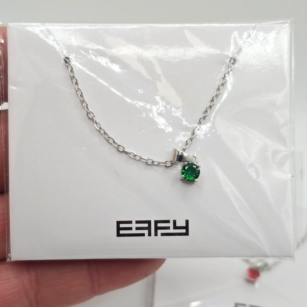 Elegant EFFY silver tone necklaces with vibrant round crystal gemstone pendants in green, red, blue, and pink. Designed for women seeking timeless, refined accessories. • Sterling silver chain with a polished finish • Includes round gemstone pendants in four colors • Lobster clasp closure for a secure fit • Lightweight and comfortable Features: • Rolo Style Chain, Prong Set Gemstones Size: Womens 18" Condition: New With Tags NWT Please review all descriptions and photos closely before purchasing, thank you! Smoke Free Workspace Please read the description for further details and measurements, Thank you!