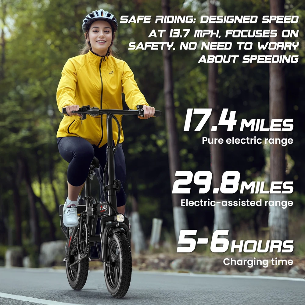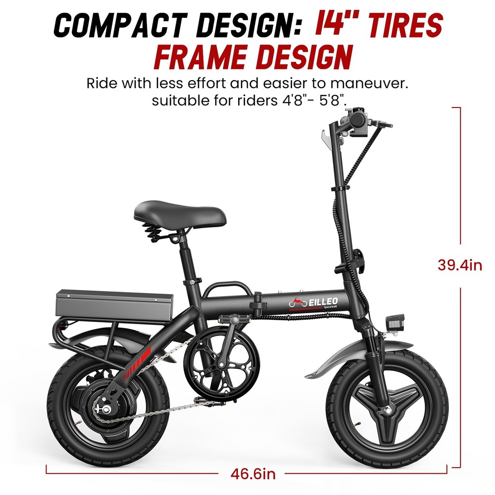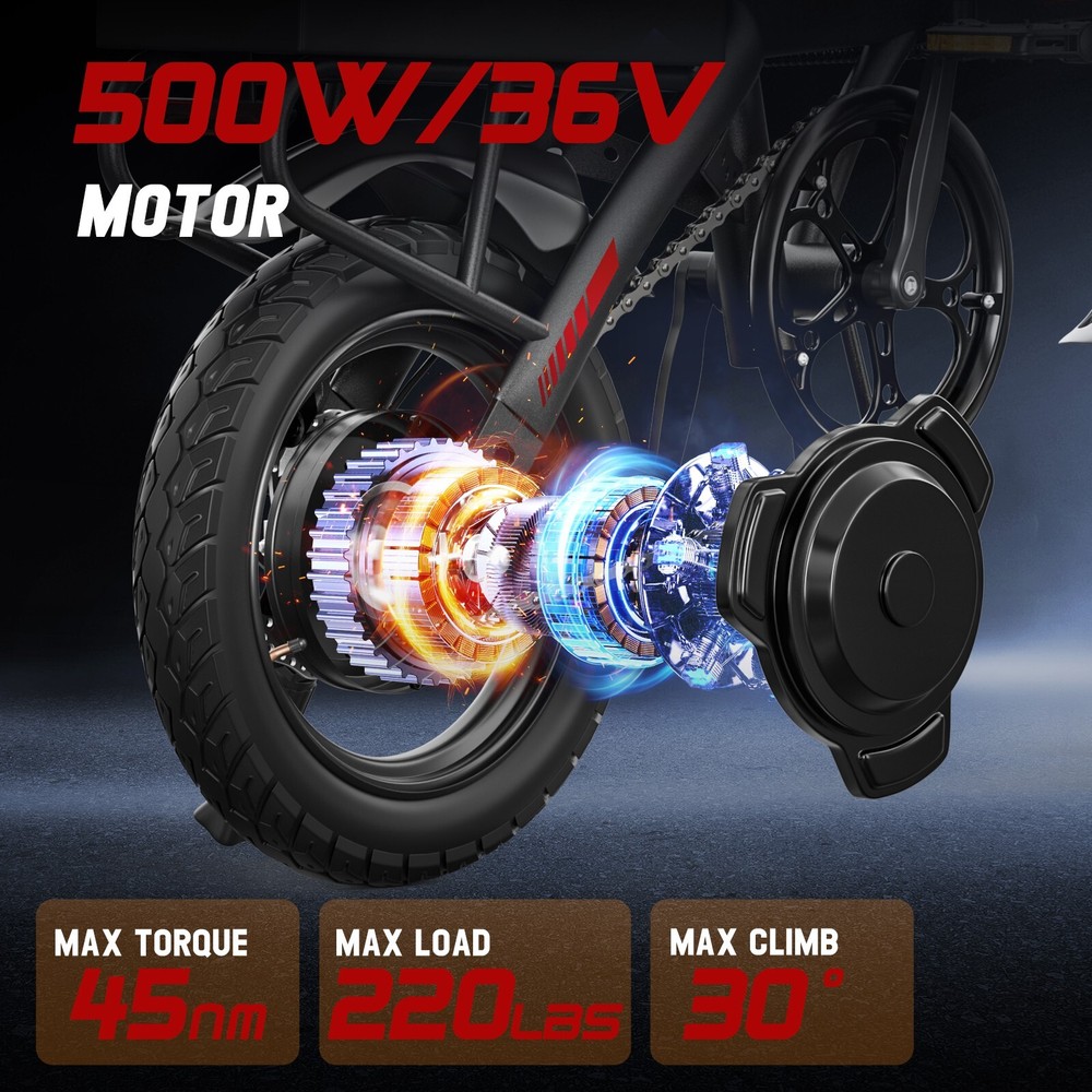 About this item Compact Design: Features a compact and lightweight design. After folding, its dimensions are 22.4x35.0x20.5 inches, taking up minimal space. It can be easily placed in the trunk of a vehicle or carried into an elevator, so you don't have to worry about space issues. 3 Riding Modes:(1)Pure Electric Mode: No pedaling needed. Just throttle up and go.(2)Electric - assist Mode: Pedaling is easier and you can cover longer distances.(3)Pedal - only Riding Mode: Ride it like a regular bicycle. Battery & Motor: Equipped with a 500W motor and a 36V battery, it can travel 17.4 miles in pure electric mode and 29.8 miles in electric - assist mode. It is especially suitable for urban riding. Safe Riding: With a speed capped at 13.7 MPH, both the handlebars and seat are adjustable in height, making it suitable for riders between 4'8" - 5'9". Even teenagers can ride it daily without worrying about speeding. Easy Assembly: Requires few assembly steps. 90% of it is pre - assembled. Customers can complete the assembly of the ebike with just a few simple operations. Payment: We accept PayPal only. We only ship item to your PayPal verified address. Payment must be received within 3 days from the date of purchase. If you have difficulty paying for the item, please email us to cancel the bid. Shipping: 1. We will arrange shipping for you within 24-48 Hours after payment cleared except the holidays. 2.Your package will be shipped within 3 business days after receive the payment. 3.Normally it needs about 2-3 weeks to arrived at your hands,if you haven't receive that over 3 weeks,contact us and we will help you solve that. 4. We always send the item to the address you give us on PAYPAL . If you have changed your address, or want us to ship to another address, please change to the new address when you pay us with PAYPAL, otherwise we will not be responsible if the package is lost. Terms Of Sales: If you have any quality problems, you are not pleased with the purchase, please contact us through email so we can start the return process. We offer a FREE standard shipping policy for all orders. After receiving an order, we ask that customers contact us within 30 days- if any item needs to be returned or replaced for whatever reason we will be happy to assist you. The quicker you can inform us about your order, the quicker we will be able to resolve the problem. For most cases, we are prepared to offer money back or item exchange, as per to request of our customer. The buyer pays for return shipping. Feedback: Any questions, pls. contact us via ebay message or email us.We will reply your message within 48 hours. If you do not receive our reply within 48 hours, pls. post a message again because sometimes our message system may block some emails. If you are satisfied with our service, pls. kindly leave us a positive feedback and give us the Detailed Seller Rating with all "5 stars" in very area. Our aim is to provide Top Level Customer Service, your recognition will encourage us greatly and serve you better. We strive to keep all our customers satisfy. Contact Us: If there is some problem about the product, please take communication with us before leaving neutral/negative feedback or opening eBay/PayPal case, we will do our best to resolve your problem. We try our best to reply to your emails as soon as possible, however, due to high volume of daily incoming emails and time zone difference; we may not be able to reply your emails immediately. Please allow 24 business hours for us to response.