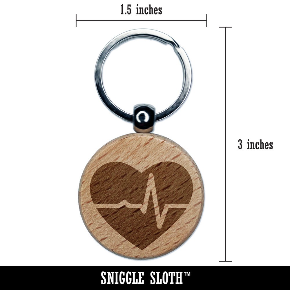 EKG Pulse Heartbeat Engraved Wooden Round Keychain Charm