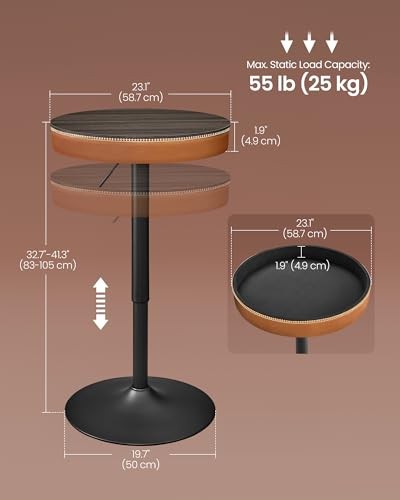 Return Policy Fast Delivery Trusted seller EKHO Collection - Height Adjustable Bar Table, Round High Pub Table with Storage, Synthetic Leather with Stitching, Mid-Century Modern, Kitchen Home Bar, Ash Brown and Caramel Brown Product Description 【STYLE THAT SPEAKS】Recognized the Bronze A’ Design Award 2024, this bar table from our EKHO Collection blends synthetic leather with refined stitching. A tangible homage to craftsmanship, it helps craft a home that speaks volumes about style 【SEAMLESS HIDDEN STORAGE】Boasting a 1.9" deep storage compartment, this round table is designed to discreetly house your cutlery and pens. Keep your essentials close at hand yet out of sight, effortlessly ensuring a tidy home 【ADJUSTABLE HEIGHT FOR VERSATILITY】Easily adjustable from 32.7" to 41.3", this bar table with storage works great in the dining room, kitchen, or living room. It's ideal for casual meals and gatherings, making every moment more comfortable and enjoyable 【ROCK-SOLID STABILITY】Count on the steadfast design of our bar table, featuring a solid 19.7" diameter base that ensures exceptional stability. Enjoy a durable, wobble-free foundation that stands up to daily use over the long term 【HASSLE-FREE ASSEMBLY】Experience the ease of assembling your new table with its intuitive structure, included assembly tool, and clear instructions. Have your height-adjustable home bar furniture ready in no time, with minimal effort Shipping Returns Payment Shipping Shipping is FREE to all addresses other than APO/PO boxes in the lower 48 states. All our stock ships from US-based warehouses. Shipped via USPS or UPS (depending on location and package weight) Unless stated otherwise, all orders will ship within 24-72 hours of your payment being processed. Check our feedback to see the great reviews of FAST shipping we offer. Returns Seller does not accept returns Payment We currently accept payment via eBay managed payments only. Once payment is cleared, we will dispatch your shipment within 1-3 business days. Please refer to the "Shipping" tab for more information regarding shipping speed to your destination.