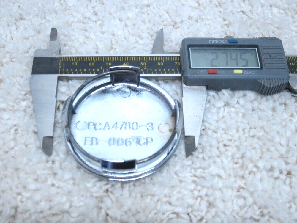 Type: Wheel Center Cap Manufacturer Part Number: PCA4780-3, EB-00661CP Color: Chrome Custom Bundle: No Brand: Elbrus Wheels Features: Car Wash Safe, Easy to Install, Lightweight gtin13: Does not apply Placement on Vehicle: Front, Left, Rear, Right Finish: Chrome UPC: Does not apply Material: Chrome Emblem Type: Elbrus Outside Diameter: Approx. 2- 1/2 inches Modified Item: No Number in Pack: 1 OE/OEM Part Number: PCA4780-3 Seller Notes: “Few miner marks / Good clips”