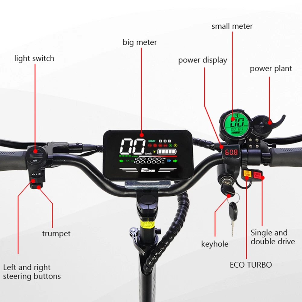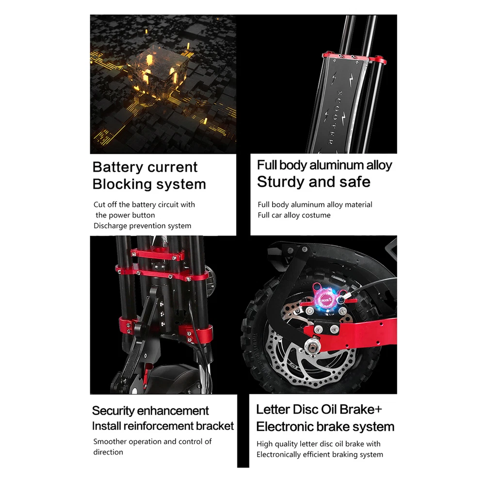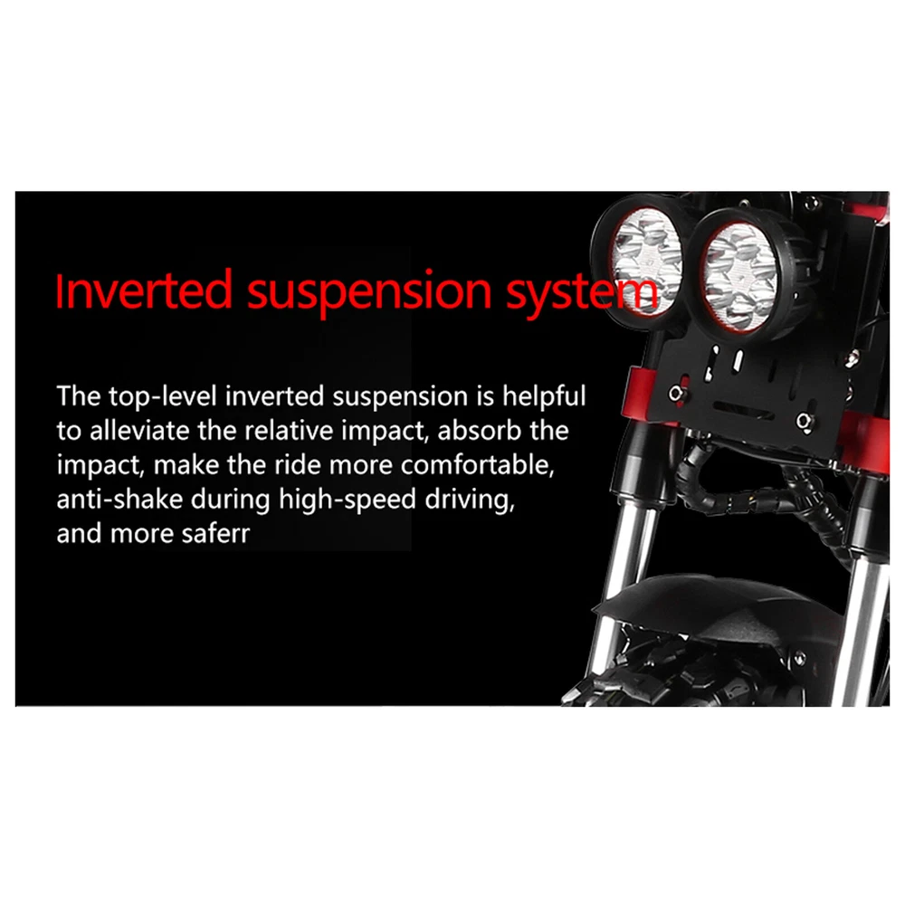 Product Detail: Note:If you have any questions, please contact us before open any case, we promise will solve the problem for you. Thanks! #1(8000W/13in/ D ual Motor) Parameters Standard Specifications 3.Chassis height 135mm 4.Pedal length*width 56*26.5mm 5.Packing size 1510*330*620mm 6.Charging stand (single/dual) double 7.Front and rear shock absorption form(color included):Front hydraulic shock absorber+Rear hydraulic double shock absorber 8.Controller parameters 60V50AH 9.Motor parameters 60V8000W 11.Anti-theft form: key lock 13.Front and rear brake form Front oil brake + rear double large oil 14.brakeback handle has 16.Headlight configuration/horn Dual U7 lights + motorcycle headlights with protective cover + horn 18.Frame material: aluminum alloy + iron 19.Tire size 13 inch road vacuum tire #2(6000W/ 11in /Dual Motor) Features:Lithium Battery / 30000mAh / 60V;Powerful Dual Motors Folding size:1420*2340*500mm Motor power :60V,6000W Battery type:Lithium-ion Battery / 30000mAh / 60V Charging time:7-8 hours (4-5 hours for dual charging) Range (ridingdistance):62 miles / 100 KM Max speed:85km/h (52.8mph) Max load:200 kg / 440 lbs Brake:Hydraulic Disc Brakes Wheel & Tire:11” Inflatable front / rear tires #3(5600W/ 11 in /Dual Motor) Product expansion size: 120*62*111-133cm Product folded size: 130*33*64cm Packing size: 1273*273*515mm Pedal Length*Width: 570*250mm Chassis height: 120mm Charging stand (single/double): double (charging time 6-8 hours) Front and rear shock absorption form: front C-type spring shock absorption + rear spring shock absorption Motor parameters: 60V 2800W * 2 Battery: 60V27AH Anti-theft form: key lock Handlebar (non-adjustable): normal handlebar Front and rear brake form: front and rear oil brake Rear handle: yes Headlight configuration/horn: double U7 lights + motorcycle horn Tail light: turn signal + tail light Marquee: Yes Logo next to the chassis: yes (the same color as the marquee) Frame material: aluminum alloy + iron Tire size: 11 inches off-road tubeless tires Gross weight: 44kg Maximum speed: 70-80KM/H Endurance: 60-80KM Packaging material (inside): carton + pearl cotton Climbing angle: 45-55°#2(8000W/13in/Dual Motor) Product configuration: Material:Full body aluminum alloy Tire size:13 inch (13*5 inch) tubeless tire(Road tires) Load:400KG Motor/speed:13 inch 4000W dual motor(The fastest can reach 85KM/H) brake:Front and rear dual oil disc brakes + EBAS electronic brakes(Letter disc oil brake) Head light:Double U7 headlights protection:Voltage key lock Controller:Dual 60V45A controller Light:Turn signal + brake light + pedal warning light forward Front shock:Long-distance hydraulic shock absorption battery:Domestic 60V43AH Endurance 100-120KM #4(5600W / 11in/ Dual Motor) Motor power: Hall brushless 60V2800W (5600W*2) Electric control power: built-in 60V30A Battery capacity: standard 21700 60V25AH Input voltage: AC100V--250V, 50--60HZ, DC67.2V4A Drive mode: dual drive Maximum load: 200KG (speed 60KM/H) 150KG (speed 90KM/H) Charging time: 10 hours with standard battery Maximum speed: 80----100KM/H Gradeability: 50° Tires: 11-inch tires tubeless off-road #5(3200W/ 11in /Dual Motor) Scooter model: Q7Pro Battery capacity: 52V19A988Wh Motor high-speed motor: 2X1600W Tire type: dual-purpose tire, 10 inches in diameter and 90MM in width. Top speed (km/h): 70km/h. Cruising range (km): 60-70km Applicable terrain: highway, urban cross-country Boot equipment: voltage key lock Headlights: six-lamp bead headlights Charging: Double charging ports and single charger. Service temperature: above-30℃ Maximum climbing degree: 35 Brake type: hydraulic disc brake, brand: Dengfeng Body material: aluminum alloy Body color: main body black Maximum load-bearing capacity of car body (kg): 200kg. Pedal distance from the ground (cm): 17cm Pedal width x length: 22.5CMX53CM Front shock absorption: inverted long-distance hydraulic shock absorption Rear shock absorption: hydraulic shock absorption Controller: 52V28A*2 Packing box size (length, width and height cm): 128 x 30 x 56 cm Vehicle dimensions (mm in length, width and height): the unfolded dimensions are 116*22.5*102-120CM. Folding size (mm in length, width and height): folding size 123*22.5*46CM. Net weight (kg): 30.2kg. Gross weight (kg): 38.5kg. CE: yes FCC: Yes. ROHS: Yes. Other certifications: Yes Motor brand: Gionee Motor model: 10 inches. Rated voltage (V): 52V Rated power (W): 2 * 1600W Battery capacity (ah): 52 v 19 a 988 wh Rated voltage (V): 52V Charging input voltage (v): 58.8 v. Rechargeable times of battery: 1500 times Charging time (h): 4-5h Battery protection board: 60 years. Charger model: 58.8V3A Rated input voltage (V): 100-240 V. Rated output voltage (V): 58.8 V (1V) Rated current (a): 3.0A (0.2A) Controller type: integrated socket controller Working current (a): 28 1A Operating voltage (V): 52V Undervoltage (v): 42v Instrument type (LCD/LED/OLED): LCD. Instrument display parameters: Yes USB output interface: yes Gear: three gears are adjustable. Instruction: Yes. Charger: 58.8V3A charger X1 Seats: one set of seats Front bag: EVA black car 2L waterproof bag Other tools: Hexagon screwdriver set, chain lock, pump, mobile phone bracket. The package includes "vehicle *1, seat *1, charger *1, Hexagon screwdriver set *1, mobile phone bracket *1, 2L black EVA bag #6(2500W/11in / Single Motor) Model Q30 Parameter Standard specification Charging Port (Single/Dual) Dual Front and rear shock absorption form (including color) hydraulic shock absorption + spring shock absorption Motor parameters 48v2500w single motor Battery 48V16AH Anti-theft form key lock handlebar (adjustable) bicycle handlebar Front and rear brake form Disc brake rear handle yes USB Charging Mode (Single/Meter) Large Meter Tire size 11 inch off-road vacuum Gross weight 35kg Maximum speed 55km/h Endurance 45-60KM Packaging material (inside) double-layer carton + pearl cotton Climbing angle 25-35 degrees Tail lights Tail lights + running lights + t