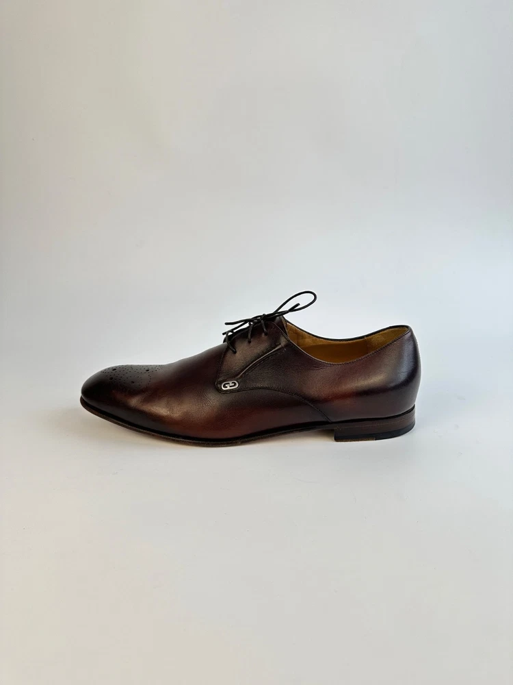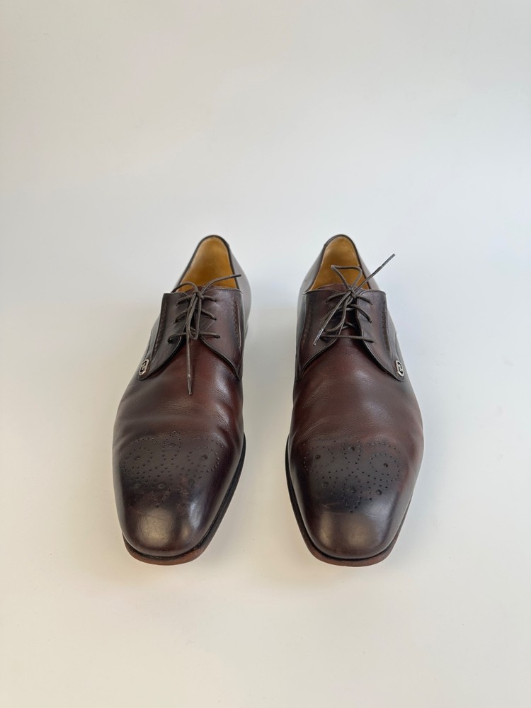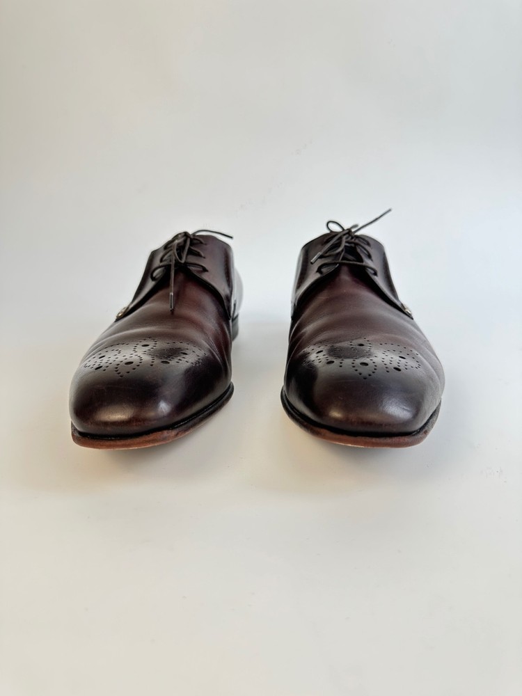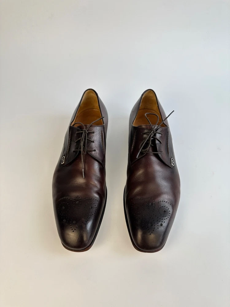 ELEGANT GUCCI 225100 Dark Brown Leather Brogue Derby Shoes Men's 8.5UK 9.5US