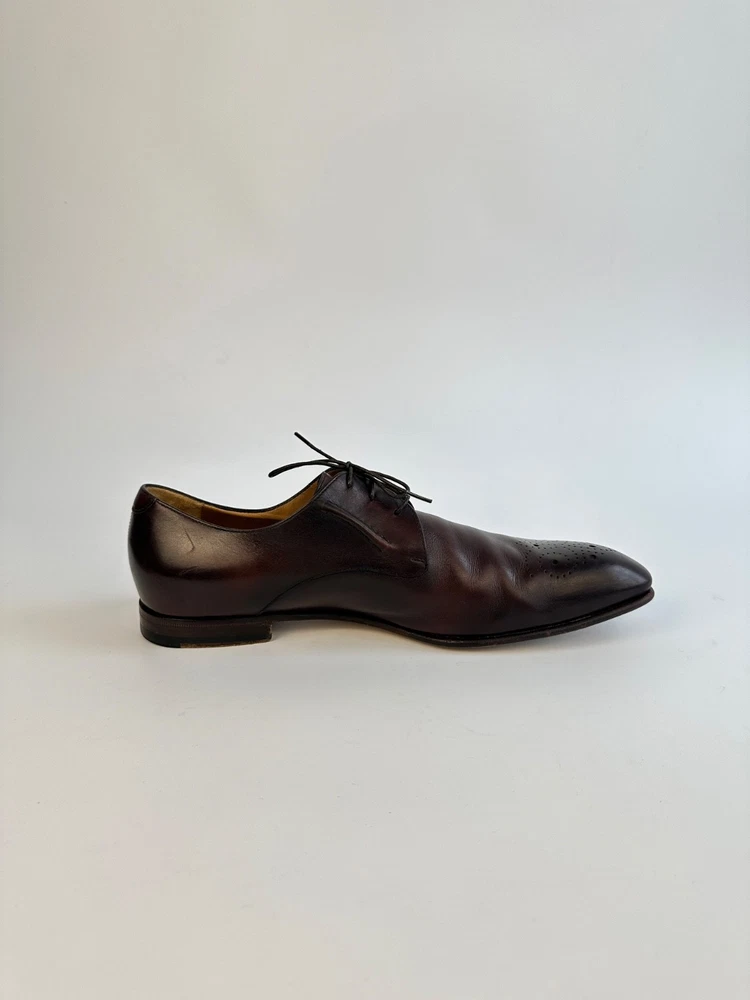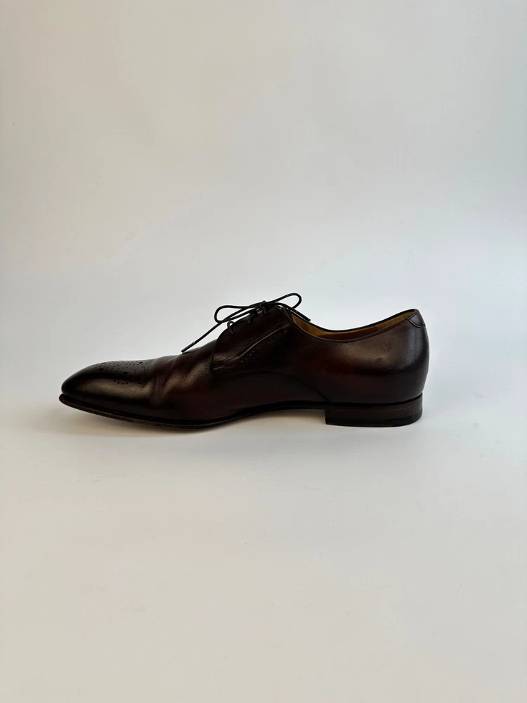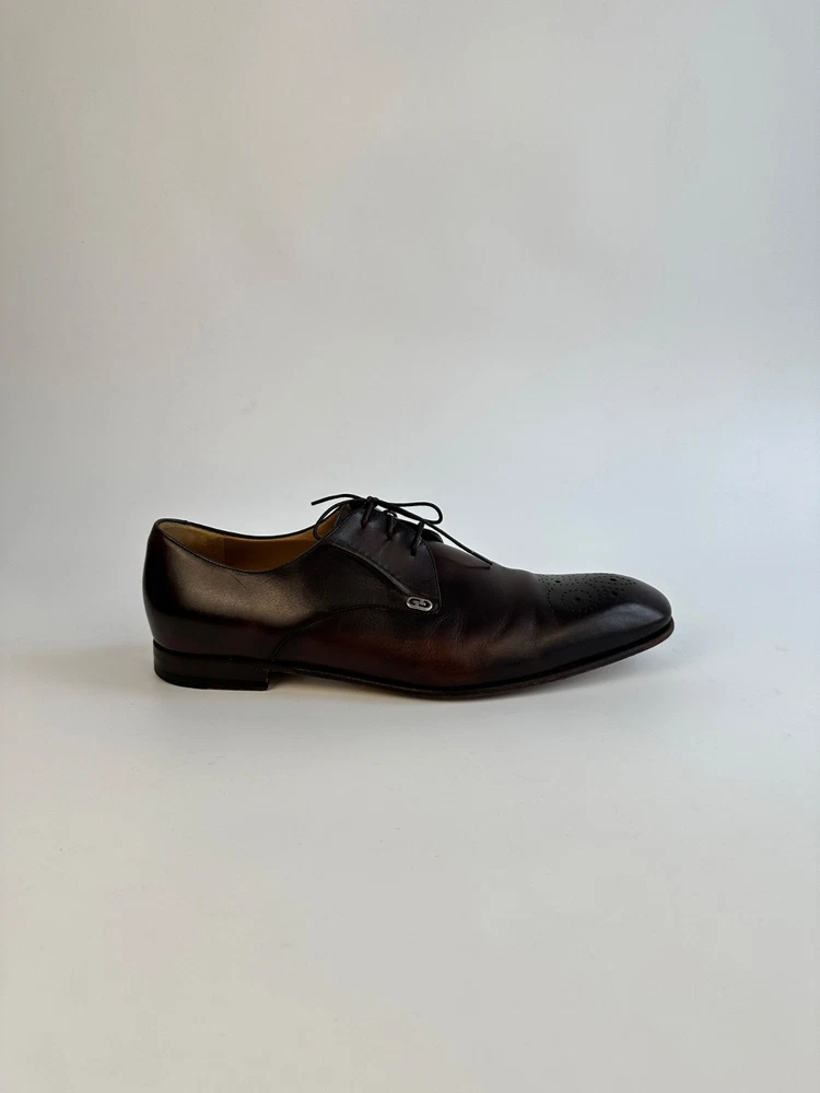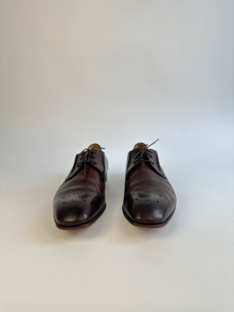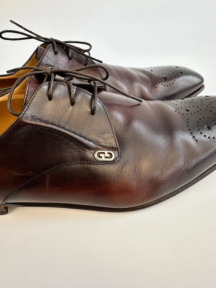ELEGANT GUCCI 225100 Dark Brown Leather Brogue Derby Shoes Men's 8.5UK 9.5US
