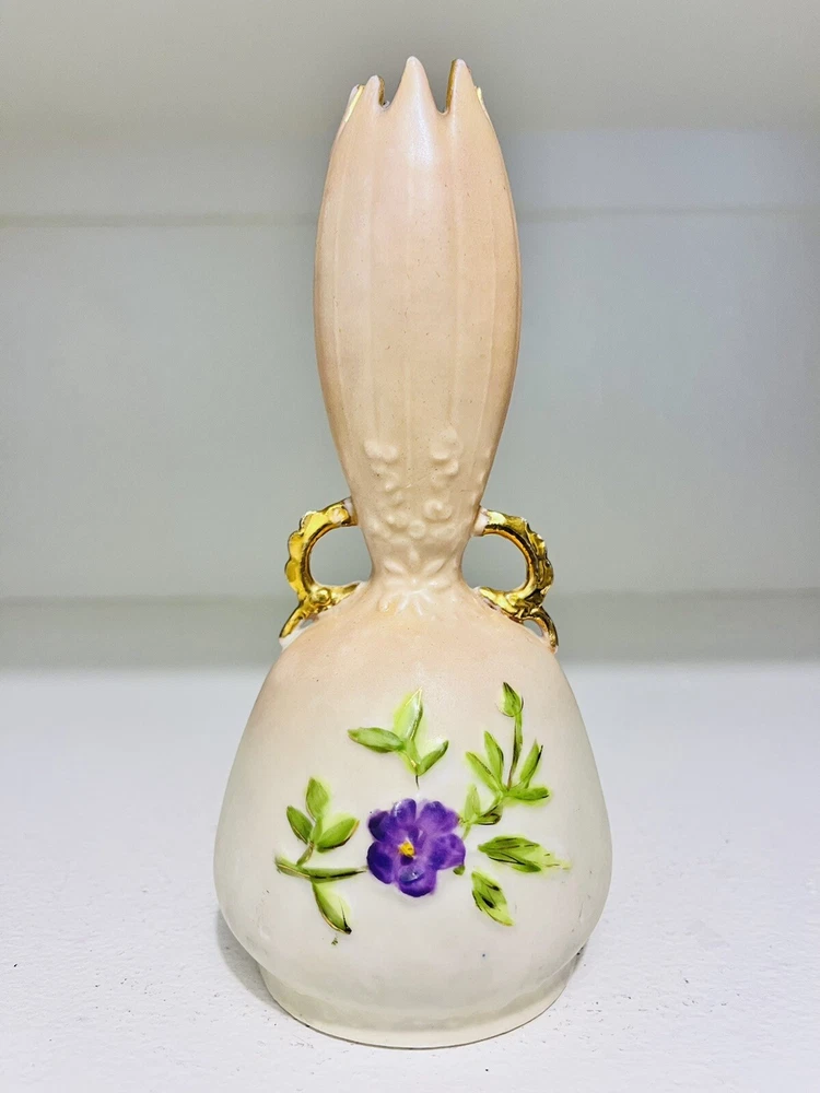 ELEGANT HAND PAINTED VINTAGE FLORAL BUD VASE TRIMMED IN GOLD ~ #4810-24. 7”