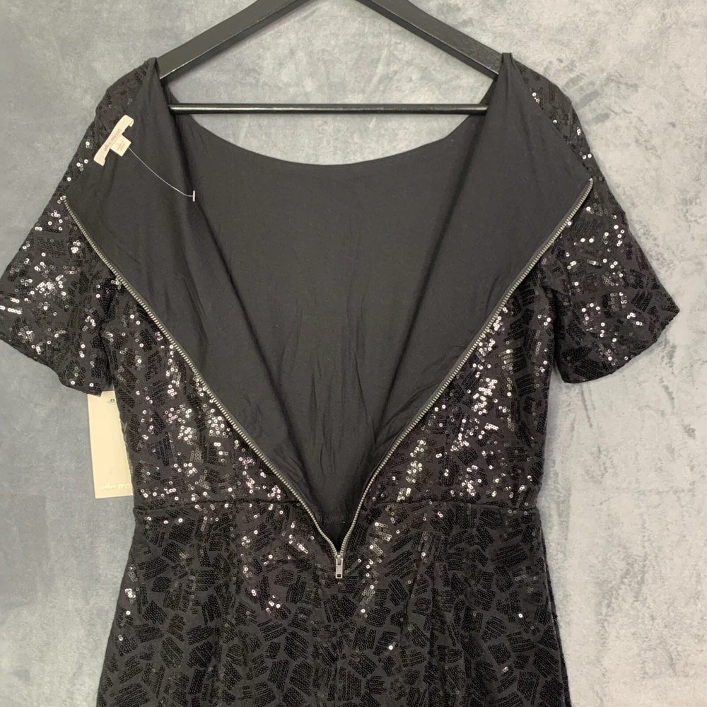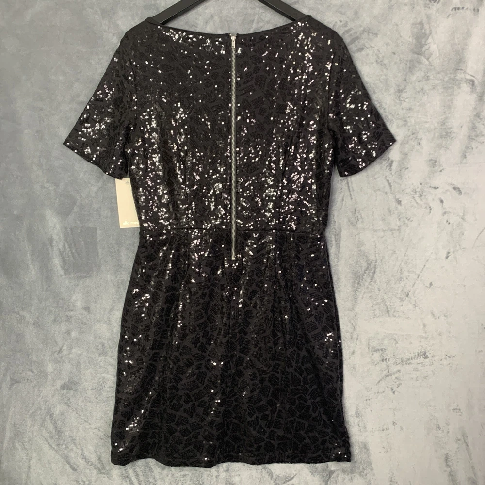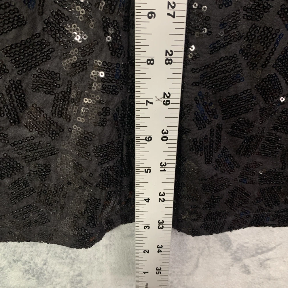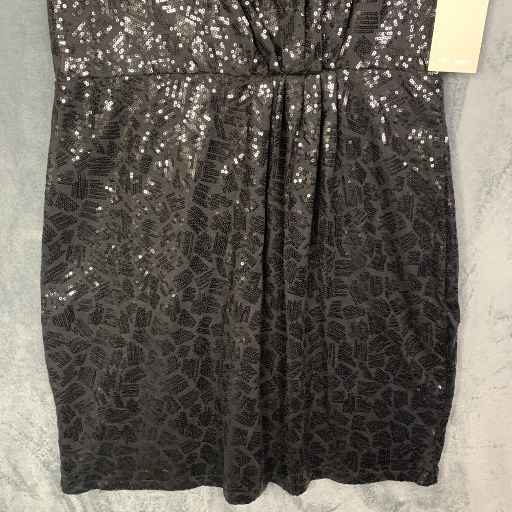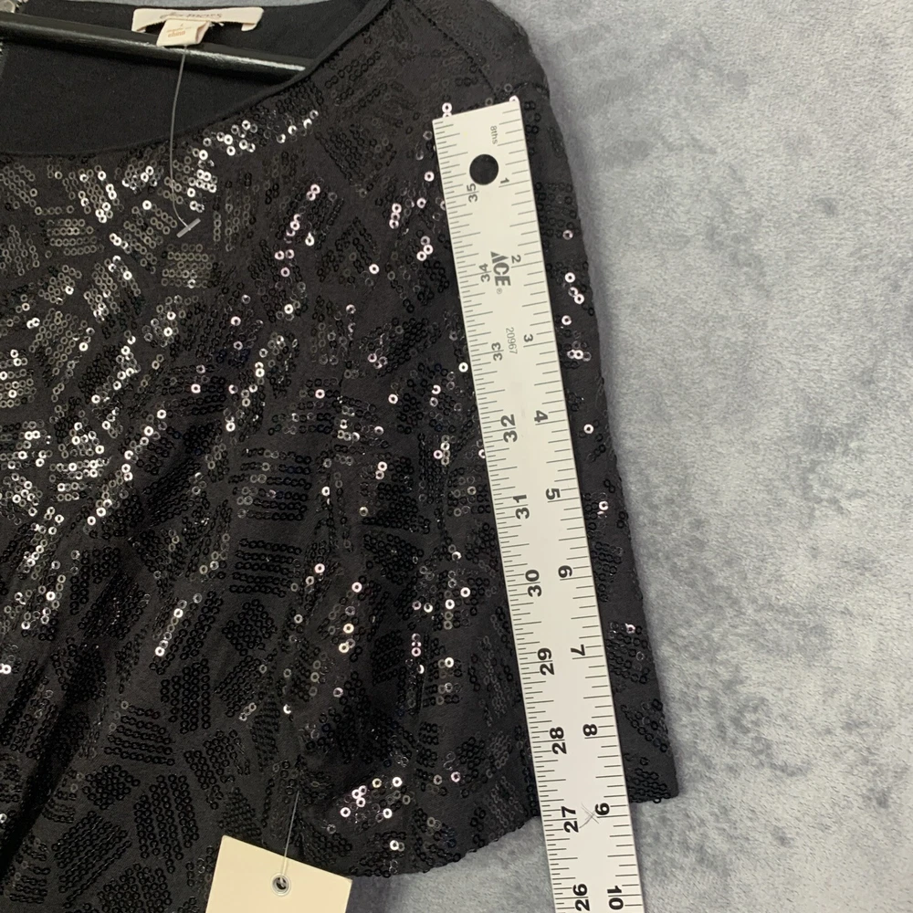 ELLA MOSS Anthropologie Womens Black Cocktail Dress Sequins Gathered Waist Sz L Approximate measurements in inches Underarm to underarm: 19 Waist: 15 Length: 35 Hips: 21 Sleeve: 9 1/2 Hem: 21 1/2 B10
