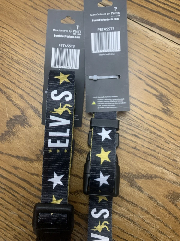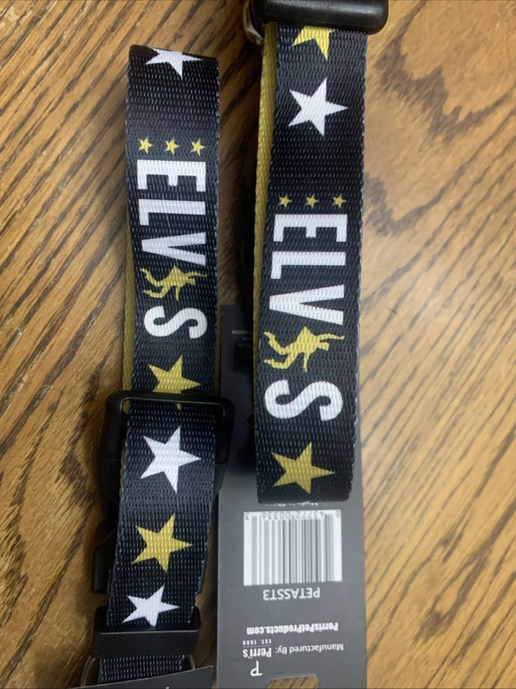 Model: Elvis Presley Brand: Perri's Pet Products Country/Region of Manufacture: China Features: Adjustable, Collor UPC: 843772003363 gtin13: 843772003363 Material: Polypropylene Webbing Personalized: No Dog Size: L Dog Breed: Labrador Retriever Type: Standard Dog Collar Personalize: No Gender: Unisex