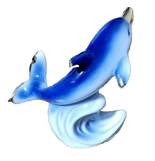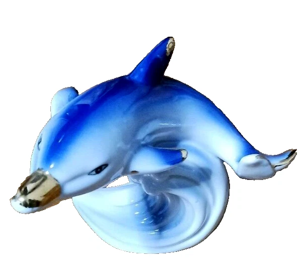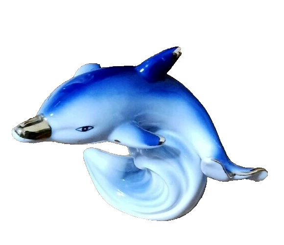 This exquisite dolphin statue is a must-have for any collector. Crafted from fine porcelain, it features a stunning gold painted trim that adds a touch of elegance to its beauty. The intricate details of the dolphin's body and fins are impressive, making it a perfect addition to any collection of animal figurines. Whether you're a lover of dolphins or simply appreciate the beauty of handmade collectibles, this statue is sure to impress. It's perfect for display on a shelf, desk, or mantel, and will be a cherished item for years to come. Add it to your collection today and enjoy the timeless beauty it brings to your home.