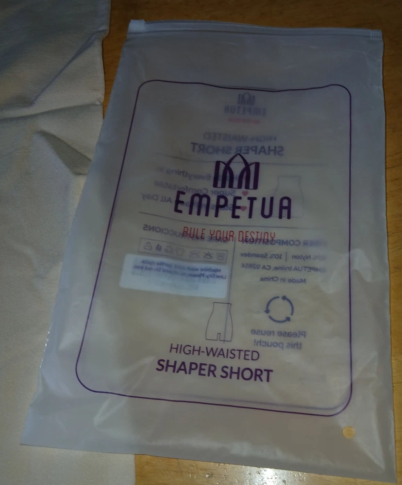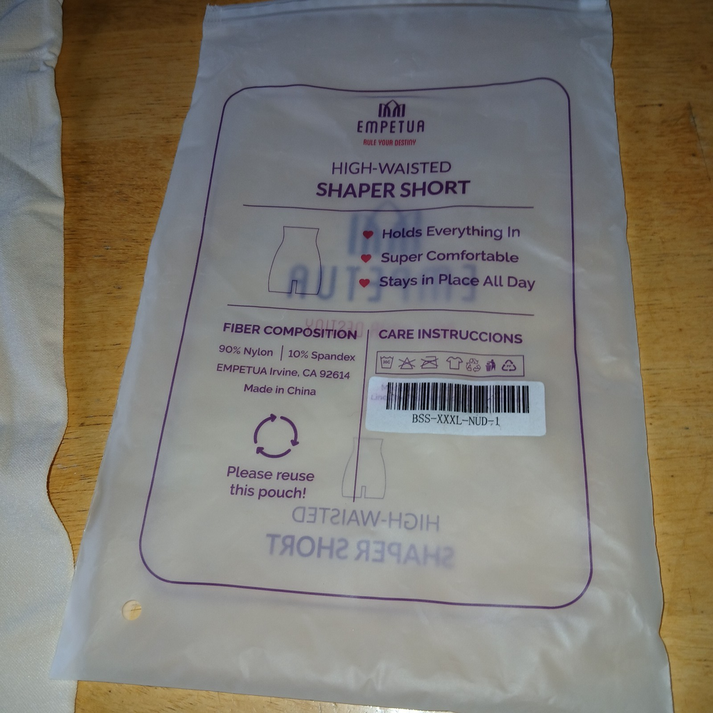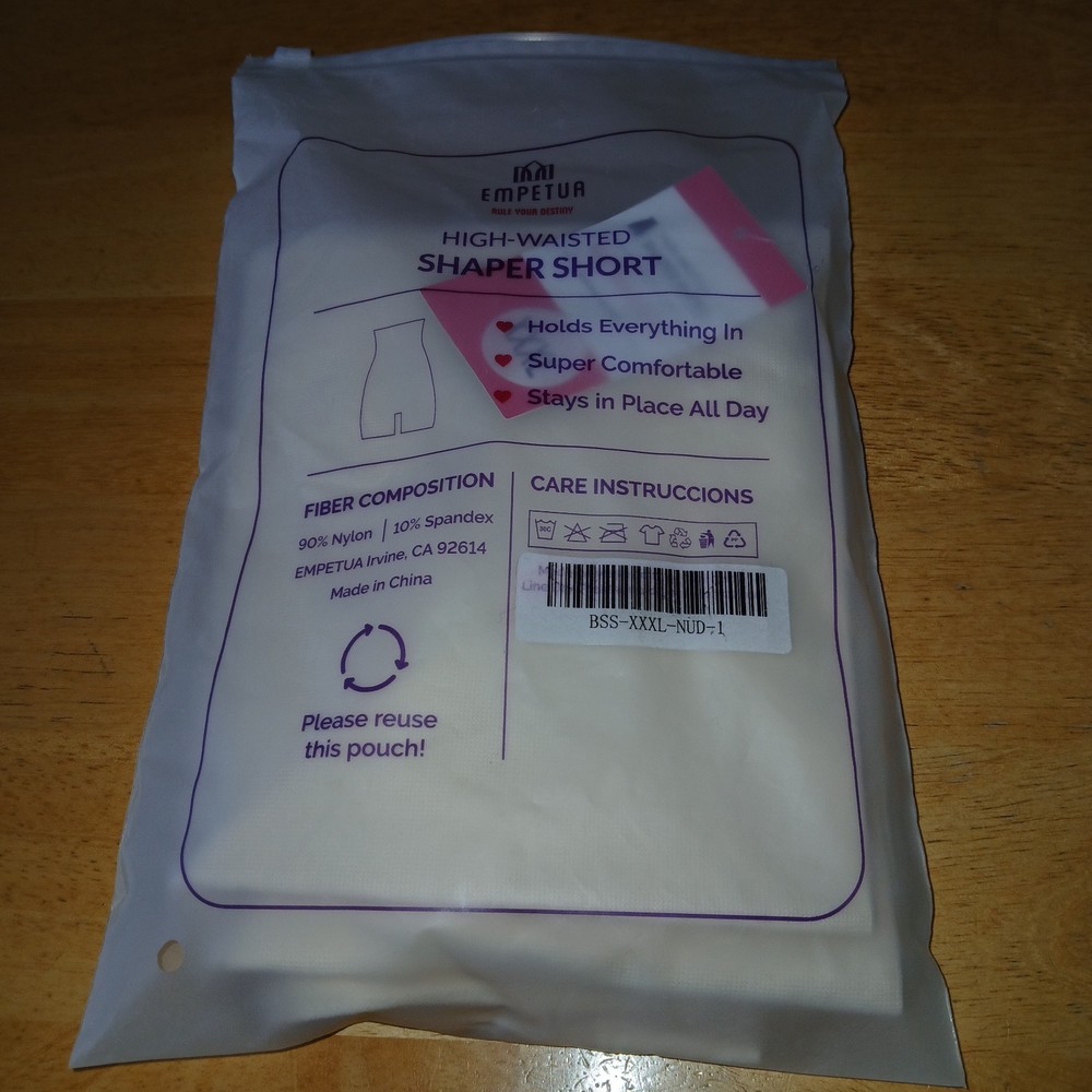 THIS IS A NICE LADIES EMPETUA "RULE YOUR DESTINY" HIGH-WAISTED SHAPER SHORT BEIGE IN A SIZE XXXL. IT IS NEW, IN PACKAGE. 90% NYLON/10% SPANDEX MACHINE WASH/HANG DRY HOLDS EVERYTHING IN SUPER COMFORTABLE STAYS IN PLACE ALL DAY SMOKE-FREE/PET-FREE HOME SHIPPING: GROUND ADVANTAGE USA/FIRST CLASS INTERNATIONAL 8 OZ. THANKS FOR LOOKING! Visit my store, DJ's Closet!