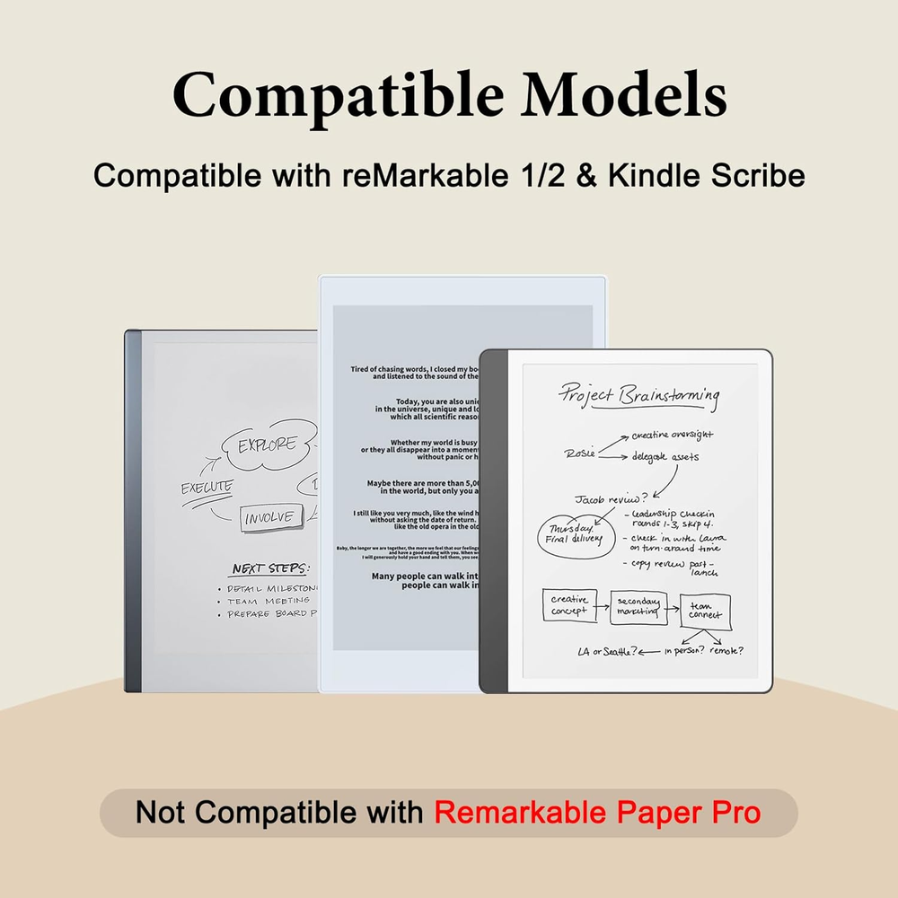 EMR Stylus Compatible Remarkable 2 Pen Digital Pen Remarkable 2/1/ Kindle Scribe 【Compatible Models】The EMR Stylus is compatible with Remarkable 2/1/Kindle Scribe Pen. No pairing, Bluetooth, or WiFi is needed—simply touch the screen to start writing or drawing. No batteries or charging required, it's ready to use right out of the box, allowing you to continue creating anytime, anywhere. It's gifts for artists, students, and professionals who seek seamless digital work. Note: Not Compatible with Remarkable Paper Pro / Remarkable Pro / / devices 【4096 Pressure Sensitivity & Tilt Support】Experience unparalleled precision with 4096 levels of pressure sensitivity, this stylus compatible with remarkable 2 pen allowing for dynamic line thickness and shading. The tilt support feature mimics natural pen strokes, making it ideal for sketching, drawing, and detailed note-taking. Whether you're an artist or a note-taker, the pen for kindle scribe pen delivers a natural, paper-like feel 【Built-in Digital Eraser & Magnetic Design】Effortlessly correct mistakes with the built-in digital eraser—no switches needed, just flip the pen compatible with remarkable pen to erase. The magnetic design allows for easy attachment to compatible devices. Streamline your creative process with this intuitive and efficient stylus for remarkable 2 pen 【Palm Rejection & Ergonomic Comfort】Designed with advanced palm rejection technology, the EMR Stylus compatible with remarkable pen lets you rest your hand naturally on the screen without accidental marks. Its lightweight, ergonomic design ensures comfort during long writing or drawing sessions, making it perfect for extended use 【Excellent Customer Service】 The package includes: 1 stylus, 5 nibs, 1 nib clip, and 1 operating manual with beautiful packaging, making it suitable as a gifts. We offer a one-year and excellent after-sales service. If you encounter any problems, please let us know and we will respond within 24 hours to provide a satisfactory solution Product description Item model number SP-19 Unit Count 1.0 Count Batteries Required? No Color Black Material Acrylonitrile Butadiene Styrene (ABS) Pressure Sensitivity 4096 Levels Compatible Devices Remarkable 2/1/ Kindle Scribe Item Weight 16 Grams EU Spare Part Availability Duration 1 Years Package Dimensions 7.64 x 2.17 x 0.75 inches Complimentary Shipping and Easy Returns Need to return something? Enjoy our 30-day hassle-free return policy! Take advantage of free shipping across all 48 contiguous states! Your order will be dispatched within 1-2 business days once payment is confirmed. Your Opinion Matters! Your happiness is our main goal! We welcome your feedback! If you encounter any problems, reach out to us right away, and we’ll be here to help. Explore the Extraordinary! Our collection showcases fascinating products that are sure to capture your attention. What surprises await you? Delve in and discover unique items that enrich your daily life. Don't miss the amazing things we have in store for you!