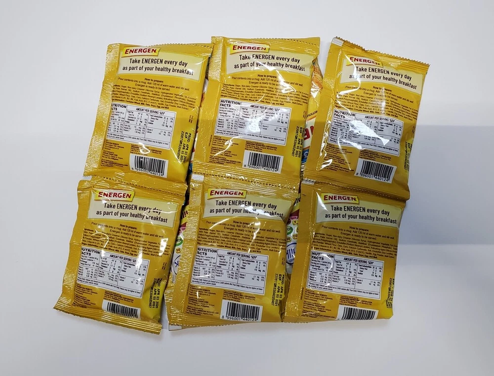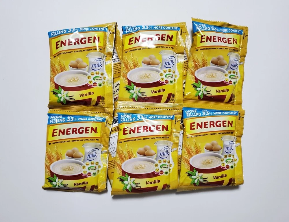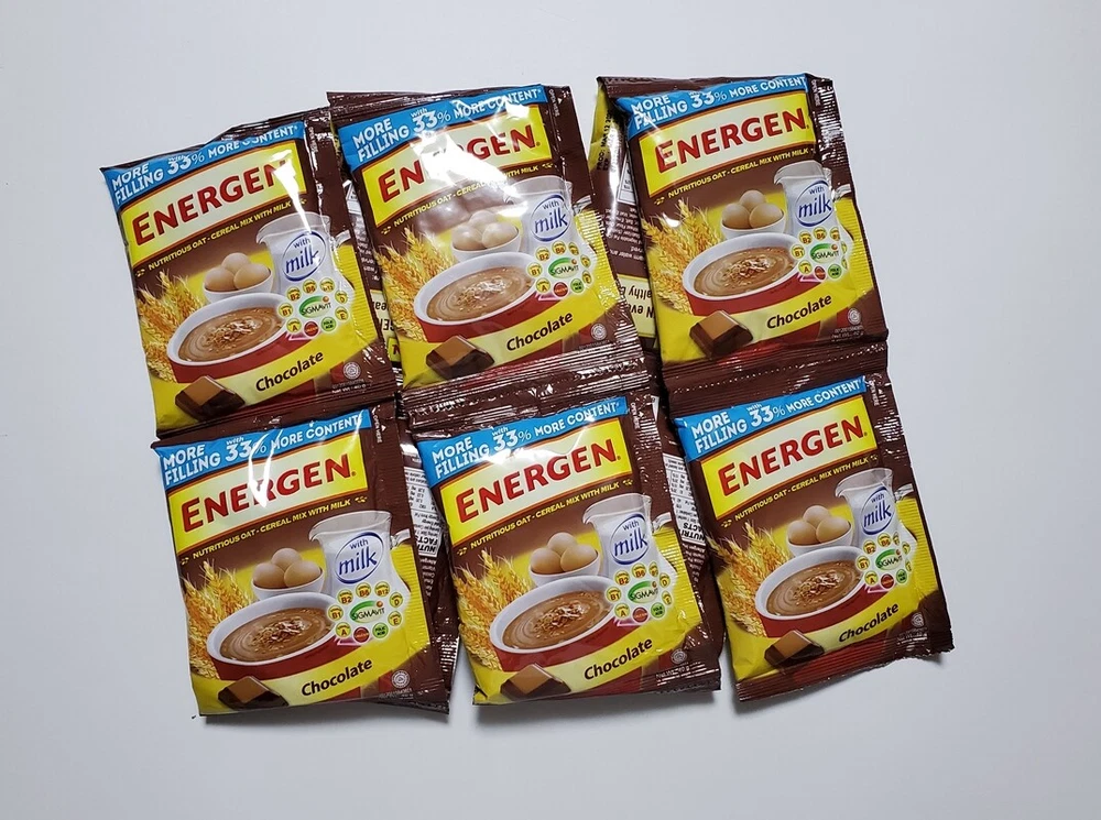 ENERGEN Chocolate Nutritious OAT-CEREAL mix with MILK 40 grams x 10 sachets NOTE: New stocks arrives every month, message me for current expiration date. Energen Chocolate milk and cereal drink is a nutritious Chocolate mix that is easy to prepare with hot water. Complete with cereals and vitamins This drink is an instant to make cereal drink with milk powder through it. Easy to make and o so tasty and healthy. Rich in vitamins, contains many good ingredients to start your day in a healthy way. 1 sachet is sufficient for 1 full cup of hot cereal milk drink. Ingredients: Sugar, Non-dairy Creamer (Glucose Syrup, Hydrogenated Vegetable Fat (Coconut and/or Palm Kernel Oil), Sodium Caseinate, Stabilizer (Di-potassium Phosphate), Stabilizer (Sodium Polyphosphate), Emulsifier (Sodium Stearoyl Lactate), Anticaking Agent (Silicon Dioxide), Wheat Flour, Oats, Whey Powder, Cocoa Powder, Milk Powder, Corn, Calcium Carbonate, Chocolate Flavor, Salt, Emulsifier (Soy Lecithin), Vitamin Premix (Vitamin A, B1, B2, B6, Folic Acid, B12, D and E), Egg Powder, Malt Extract. Allergen Information: Contains Wheat, Milk, Oats, Soya, Egg and Malt ENERGEN Vanilla Nutritious OAT-CEREAL mix with MILK 40 grams x 10 sachets Energen Vanilla milk and cereal drink is a nutritious Vanilla mix that is easy to prepare with hot water. Complete with cereals and vitamins This drink is an instant to make cereal drink with milk powder through it. Easy to make and o so tasty and healthy. Rich in vitamins, contains many good ingredients to start your day in a healthy way. 1 sachet is sufficient for 1 full cup of hot cereal milk drink. INGREDIENTS: WHOLE GRAIN WHEAT, RICE, SUGAR, MILLED CORN, WHEAT BRAN, SOLUBLE WHEAT FIBER, CONTANS 2% OR LESS OF SALT, BROWN RICE SYRUP, MALT FLAVOR, NATURAL FLAVOR, BHT FOR FRESHNESS. ENERGEN PANDESAL MATE CREAMY AND CHOCOLATEY DRINK 30 grams x 10 sachets Energen Pandesal Mate is a product made with pandesal pairing in mind that is why it is made thick and rich that’s perfect with it. High source of Vitamin B2 and B3. Thick and rich chocolate Drink Pandesal’s delicious Partner. INGREDIENTS: SUGAR, NON-DAIRY CREAMER(GLUCOSE SYRUP, FULLY HYDROGENATED VEGETABLE FAT (COCONUT AND/OR PALM KERNEL OIL), SODIUM CASEINATE, STABILIZER (DI-POTASSIUM PHOSPHATE), STABILIZER (SODIUM POLYPHOSPHATE), EMULSIFIER (SODIUM STEAROYL LACTYLATE, ANTICAKING AGENT (SILICON DIOXIDE), COCOA POWDER, FOAMING CREAMER(GLUCOSE SYRUP SOLIDS, VEGETABLE FAT, MILK SOLIDS, STABILIZER (DI-POTASSIUM PHOSPHATE), FLAVORING, FULL CREAM MILK POWDER, MALT EXTRACT POWDER, VEGETABLE STABILIZER (SODIUM CARBOXYMETHYL CELLULOSE), ARTIFICIAL FLAVOR, SALT. ALLERGEN INFORMATION: CONTAINS MILK AND MALT AND MAY HAVE TRACES OF MAIZE AND SULPHITE. How to prepare Put the contents of this bag in a cup Boil water and pour approximately 150 ml into the cup Stir well and enjoy Reminder before you buy: We are located in the Northern Mariana Islands (United States Territory) which is outside the US. Domestic shipping time via first class mail or priority mail is between 10-15 days depending on your location. International shipping time via priority mail is between 15-30 days depending on your location. Please take note of this when giving feedback rating on "Shipping Time". Thank you for your understanding and consideration.