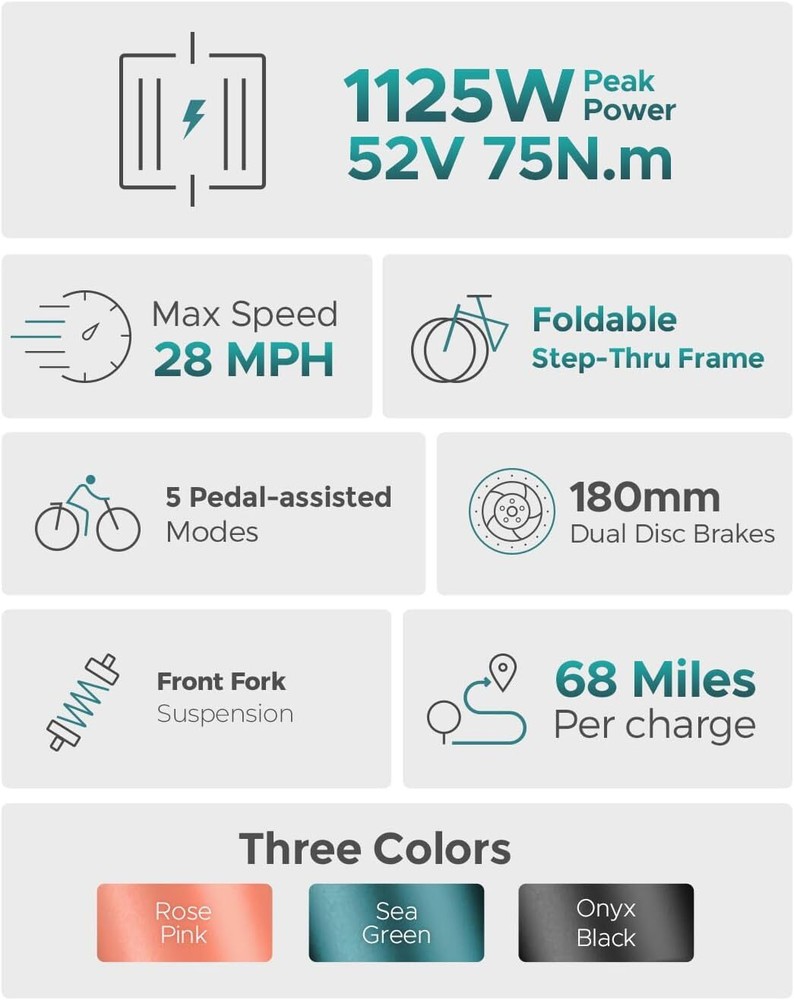 ENGWE L20 2.0 52V 13AH Foldable Step-Thru E-Bike 75Nm Torque 45KPH Speed PAS Electric Bicycle