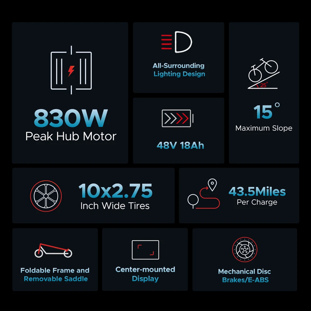 HomeENGWE Y600 Electric Scooter 830W Peak 48V 10 Tires 70KM Range IPX5 Waterproof