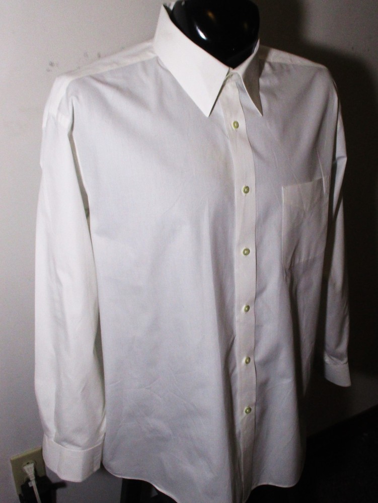 See my EBAY STORE at “SAMTPC53” to view 100’s more of my Men's Shirts!!! Combine Shipping: (on multiple items you pay full price on heaviest item first and then HALF PRICE shipping on ALL other clothes items. Men's Long Sleeve Dress Shirt. Brand: ENRO. Description: men's "ultra Poplin" ENRO long sleeve dress shirt, button front, button cuffs, pocket on front, see pics Color: White. Size: 17.5/34-35 (please see measurements). Measurements: 26" armpit to armpit, 32" shoulder to hem, 20.5" insleeve. Material: 55% Combed Cotton, 45% Polyester. Condition: Very Good condition.