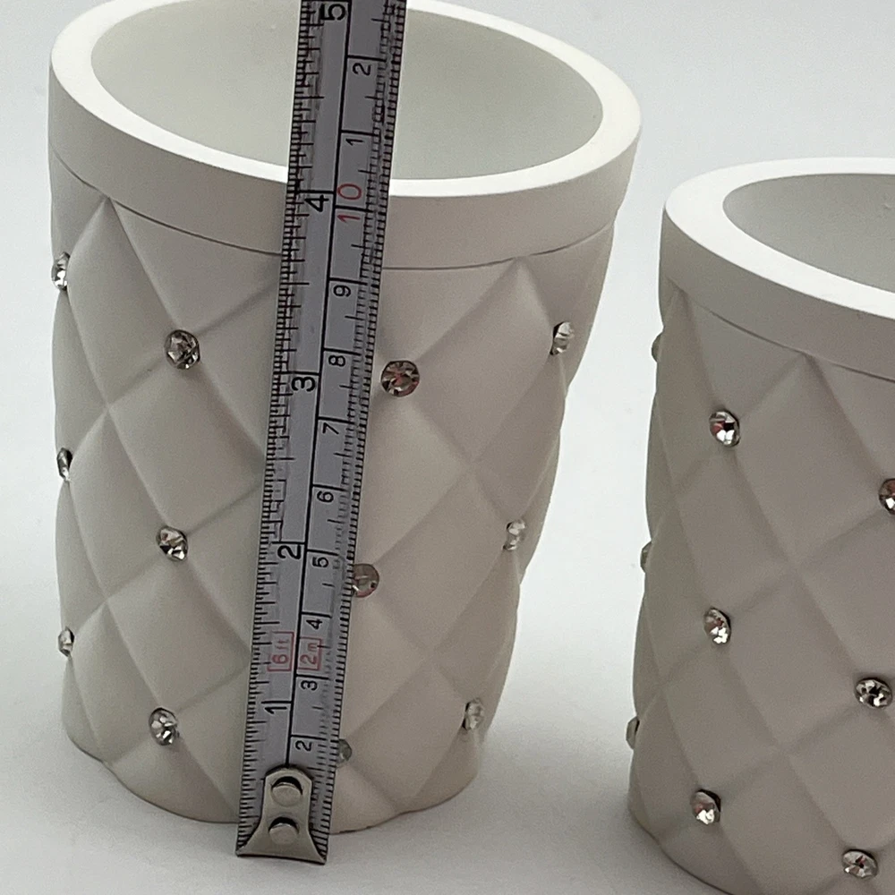 ENVOGUE 3 Pc White Resin Crystals Toothbrush Holder, Soap Dish, Tumbler New without box