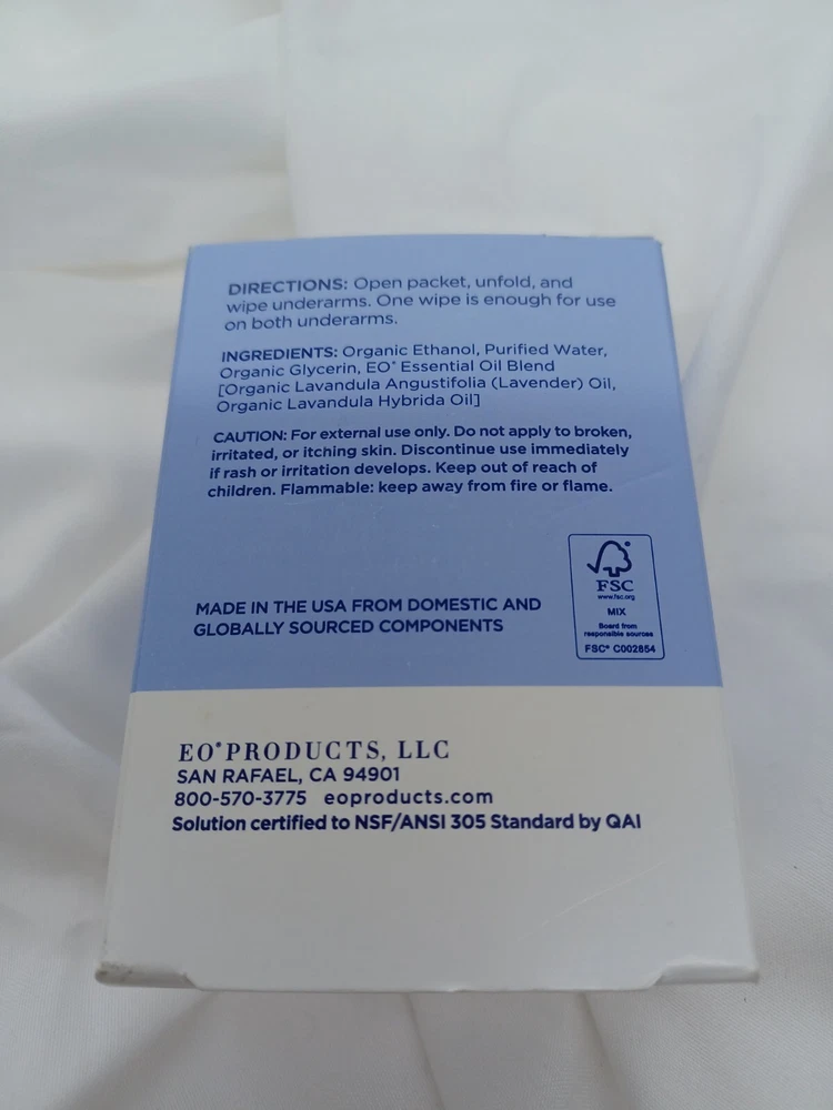 EO essential oils natural deodorant wipes French lavender 6 single towelettes.