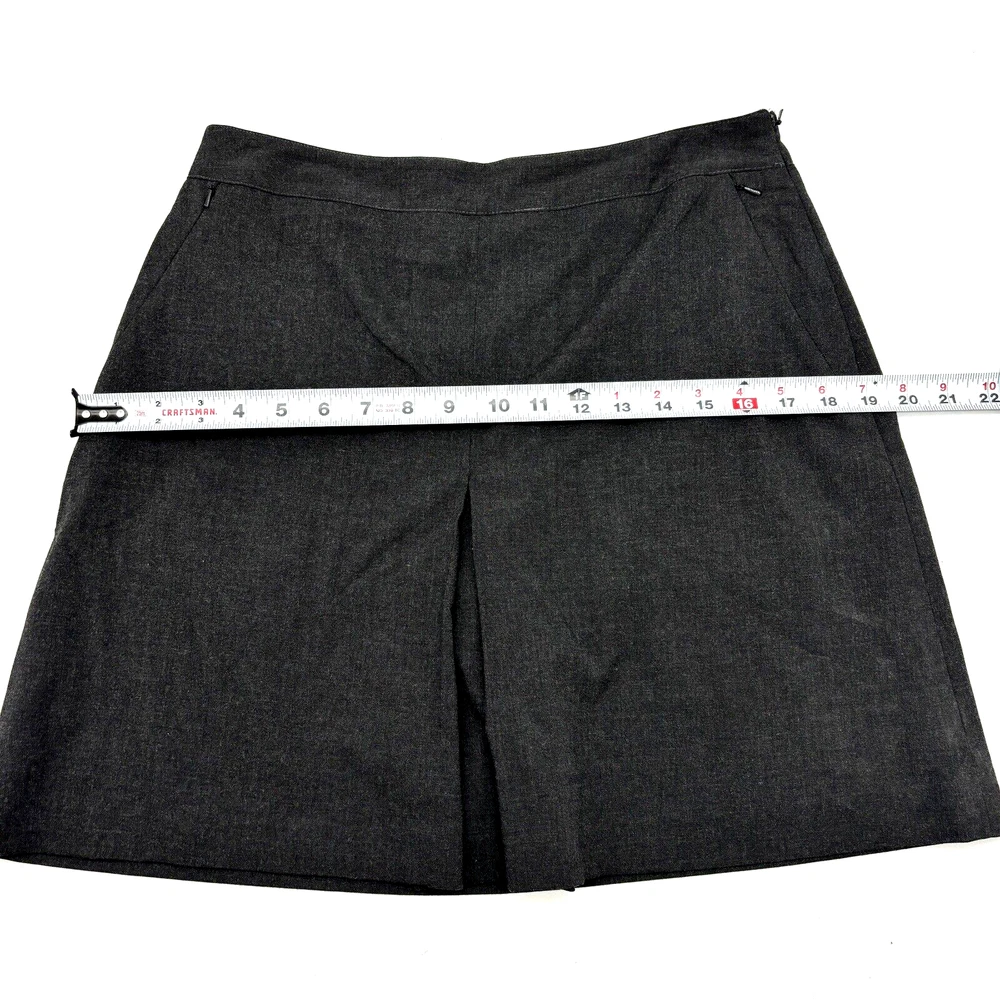 EP Pro Women's Golf Skort 64% Polyester, 33% Rayon, 3% Spandex Dark Charcoal Gray Above Knee Length Flat Front 2 Zip Pockets Zip Closure on Left Hip Stretchy Built in Shorts Moderate stretch! Women's Size 8 Please refer to measurements below to ensure accurate fit before purchase! 14.5" waist (29" circumference) 19.5" hips 23" hem 17.5" full length from waist to hem 11.5" rise on built in shorts 4.5" inseam on built in shorts Measurements made with garment laying flat. Excellent pre owned condition. Very gently owned. No rips, tears, stains, holes or other notable flaws. Clean and from a smoke free home.