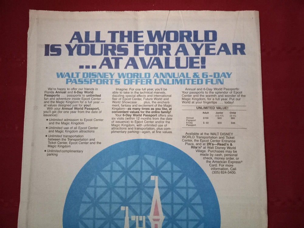 The special section of the Orlando Sentinel on the opening of EPCOT Center in Orlando Florida in 1982. The second theme park on the Orlando Property. In excellent condition. I can try to roll it and send it media mail if desired to save on shipping - which if cheaper the difference would be refunded to the buyer