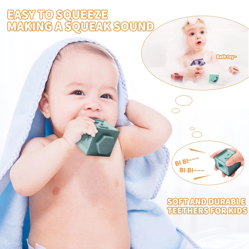 EPPO 12PCS Baby Blocks Soft Building Blocks for Baby Toys Montessori Sensory Infant Bath ToysTeethers Toy for Toddlers Babies 6 9 Month 1 2 3Year Old Up Relief Design: A baby blocks set included 12 pieces blocks,Each blocks has an embossed animal,shape,fruit,Arabic numerals and geometrical patterns on the sides.And Children can develop their sense of touch and vision by touching and observing these embossed patterns.This amazing blocks can help baby better grow up in their early childhood development. Stacking Toy: These baby building blocks are soft,durable and easy to be picked up and stacked together by baby’s hand.It also can be squeezed and will making a squeak sound. Teethers: It is soft,chewable and perfectly for the baby who are aged 6 months and just get their first teeth Early Learning Play: This blocks for babies provides various fun for kids.Also teaching kids letter, counting,balancing,building and other motor skills.The carved number is a good way for kids to learn Arabic numerals,addition and subtraction.It also can be use as match game Safe Material: Baby blocks are soft,BPA Free,safe,non-toxic and made by food grade silicone Relief Design: A baby blocks set included 12 pieces blocks,Each blocks has an embossed animal,shape,fruit,Arabic numerals and geometrical patterns on the sides.And Children can develop their sense of touch and vision by touching and observing these embossed patterns.This amazing blocks can help baby better grow up in their early childhood development. Stacking Toy: These baby building blocks are soft,durable and easy to be picked up and stacked together by baby’s hand.It also can be squeezed and will making a squeak sound. Teethers: It is soft,chewable and perfectly for the baby who are aged 6 months and just get their first teeth Early Learning Play: This blocks for babies provides various fun for kids.Also teaching kids letter, counting,balancing,building and other motor skills.The carved number is a good way for kids to learn Arabic numerals,addition and subtraction.It also can be use as match game Safe Material: Baby blocks are soft,BPA Free,safe,non-toxic and made by food grade silicone Shipping from the USA All of our products are shipped from the USA, ensuring quick delivery to your destination. Payment We offer the following payment methods: PayPal, credit card, bank transfer, and eBay's secure payment system. Free Shipping & Free Returns Shipping within the USA is FREE. Additionally, any return is absolutely free for you. Risk-Free Purchase You have the option to return an item within 30 days without any justification. We cover the return shipping costs! Fast Shipping We ship immediately upon receipt of payment. Generally, the package is delivered within 2-3 days in the USA. If it takes longer, we will contact you. Quality and Costs Made in Europe, USA, China No customs fees or additional charges Total satisfaction guarantee Invoice with declared VAT available upon request in .pdf format Feedback Your feedback is very important to us. After you pay for your purchase, you will automatically receive positive feedback from us.