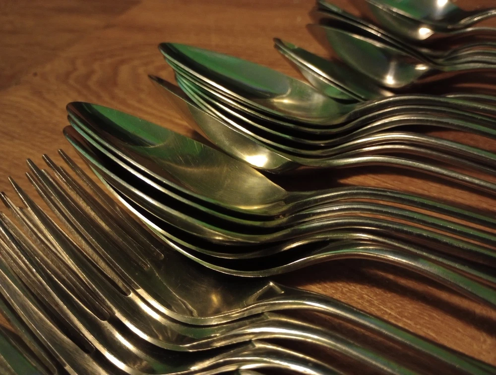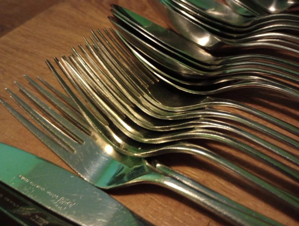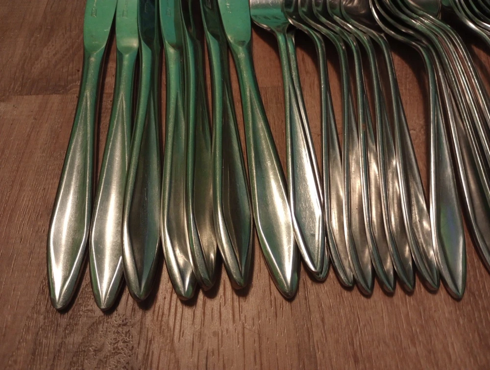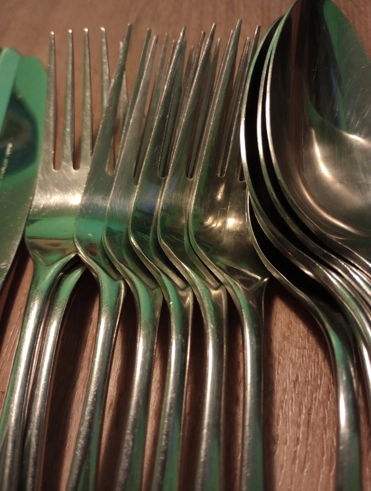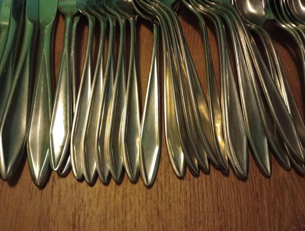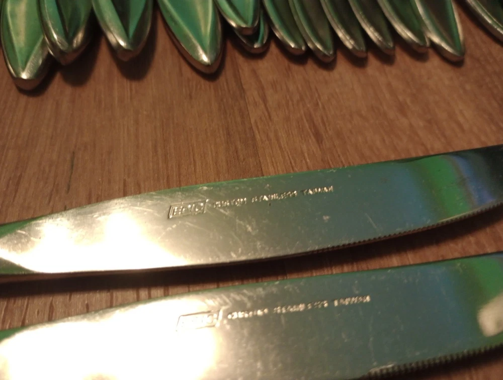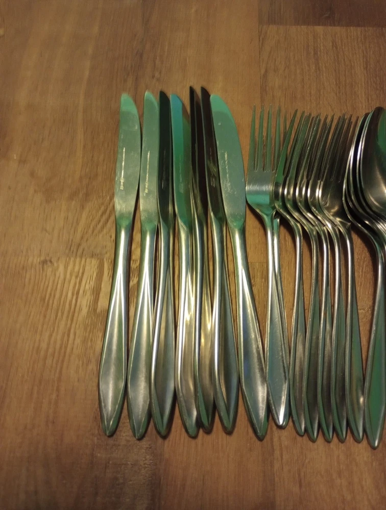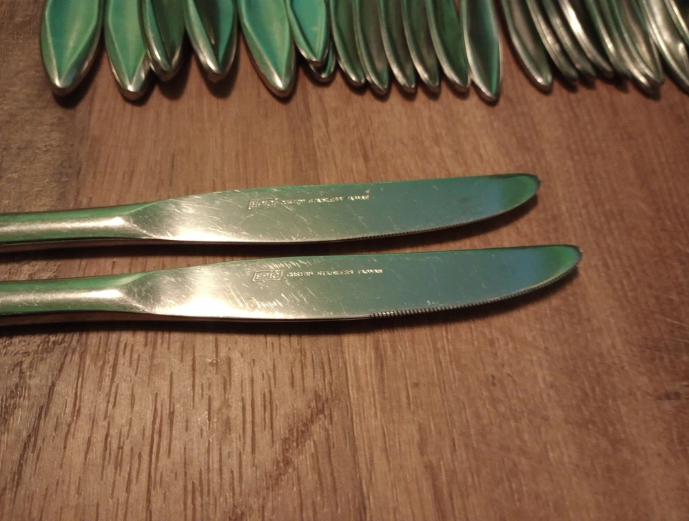 Set Includes: Fork, Knife, Spoon Country/Region of Manufacture: Taiwan Material: Stainless Steel Handle Material: Stainless Steel Color: Silver Finish: Satin Style: Modern Department: Adults Type: Set Brand: Epic MPN: EPSEPS7 Stainless, Custom, Taiwan, Satin Number of Items in Set: 36