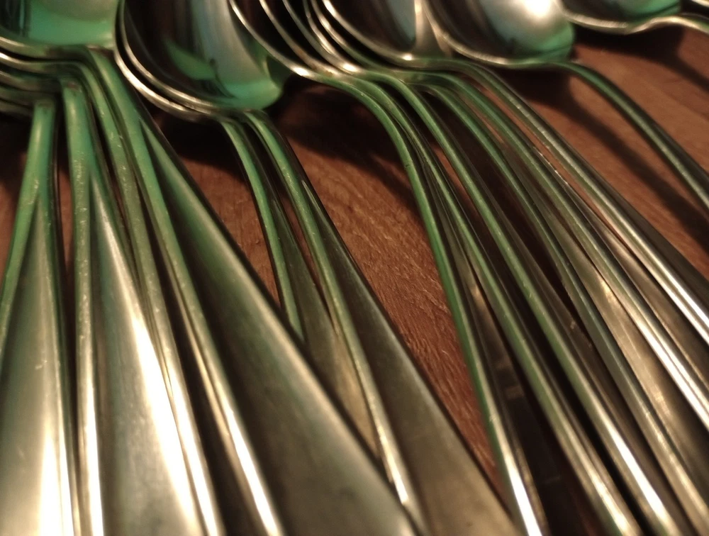 EPS7 STAINLESS by Epic Silver Pattern EPSEPS7 Custom Satin Flatware Set, Taiwan.