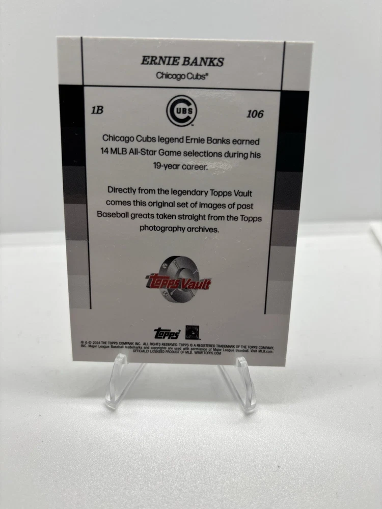 ERNIE BANKS 2024 Topps Black & White Vault HOF Legend SP #106 Chicago Cubs. Condition is Ungraded. Shipped with USPS Ground Advantage.